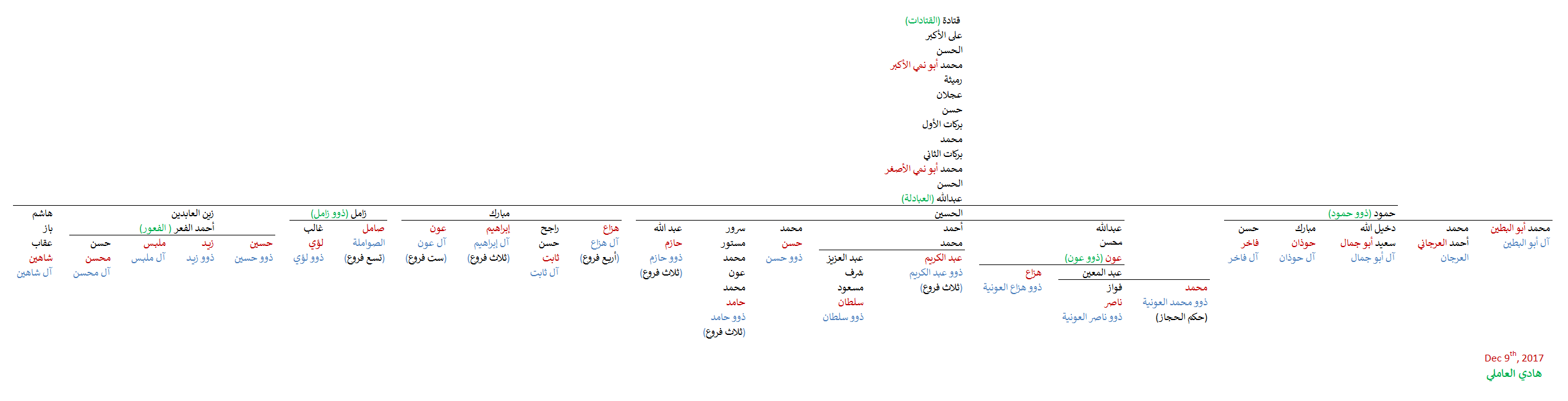 لذا أحببنا مشاركتكم بهذا المُشجّر العلوي الخاص بهم الذي يُبرز أهم فروعهم وعوائلهم:
