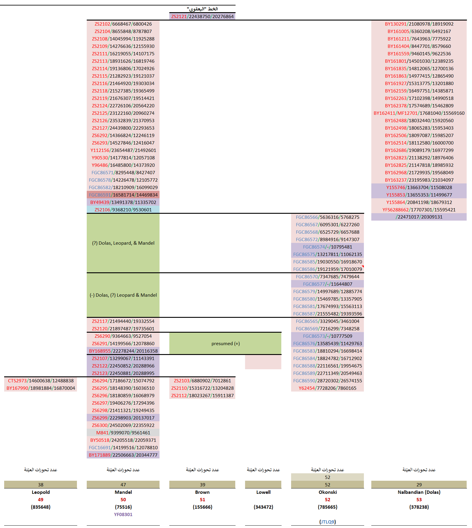 تمّ قراءة ملّف BAM لعيّنة Okonski وتبيّن وجود أربع تحورات مشتركة إضافيّة لهم مع باقي “اليعقوبيّين“، وهي: