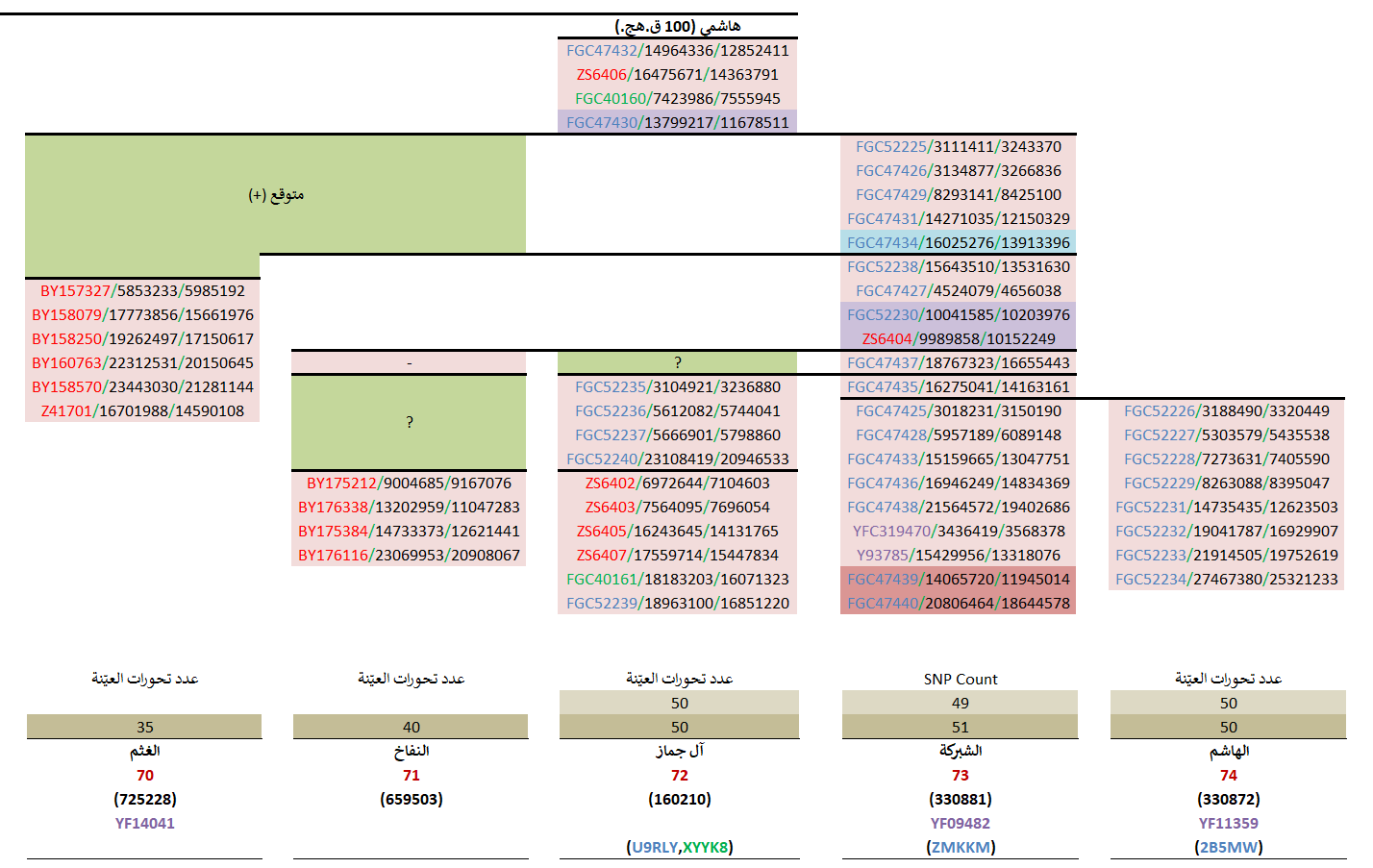 مواضيع مُتعلقة: التحوّر الفرعي ZS6406 ، هواشم شرق الجزيرة ، نتيجة السادة النفّاخ BigY ، نتيجة السادة الغتم BigY