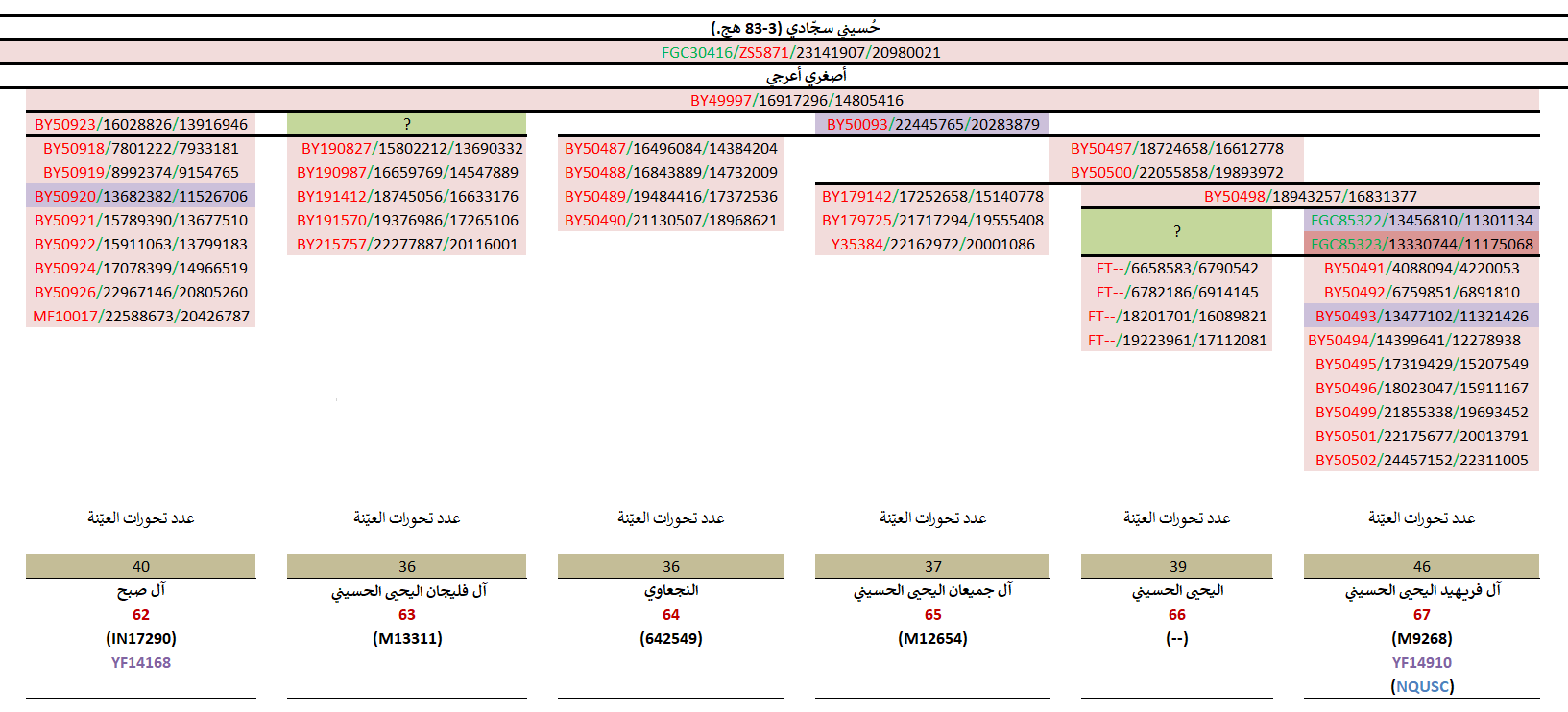 مواضيع مُتعلّقة: تحديث ثاني لعيّنة الحرموس الحسيني ، نتيجة السادة الحرموس الحسيني ، نتيجة السادة آل فريهيد BigY ، نتيجة السادة آل صبح BigY ، نتيجة السادة الجميعان BigY ، نتيجة آل النجعاوي BigY