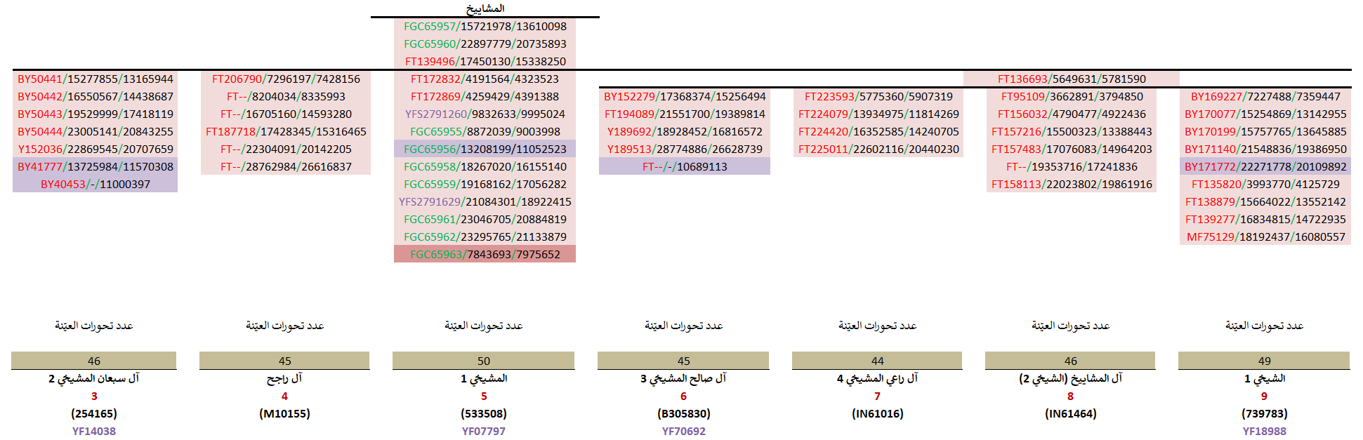 مواضيع مُتعلّقة: نتيجة آل راعي المشيخي Y700 ، تحديث نتيجة آل سبعان المشيخي ، نتيجة آل صالح المشيخي Y700 ، نتيجة الأشراف المشيخي الأولى Y700 ، نتيجة الأشراف المشاييخ Y700 ، نتيجة الأشراف الشيخي Y700 ، نتائج BigY/BAM لآل المشيخي ، تحديث نتيجة الأشراف آل شمسي ، تحديث نتائج النعمي والمعافا ، نتيجة BigY للسادة النعمي ، نتيجة آل المُحرّق النعمي Y700