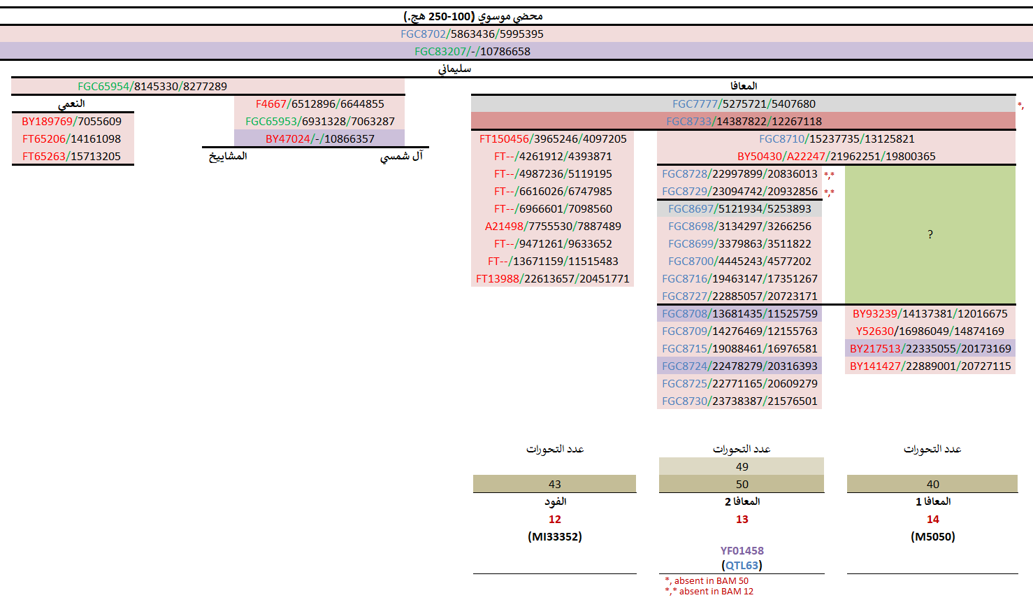 - هناك تحوّران لدى خطّ المعافا ليس لهم تغطية لدى BAM عيّنة آل الفود، ومع تطوير العيّنات سيتمّ تدقيق الفروع بشكل أفضل.