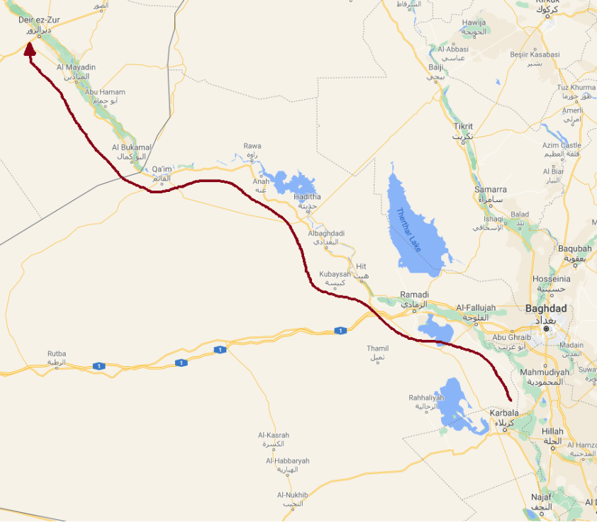 وبحسب الجُغرافيا المُتقاربة بين المُثلث العراقي (الكوفة-الحلّة-كربلاء) ودير الزور (الموضحة في الخريطة أدناه)، يبدو احتمال انتقال السيّد حسين الأطرش أو جدّه محمد السائح عَبْرَ ساحل الفرات الجنوبي وارد جدّاً.