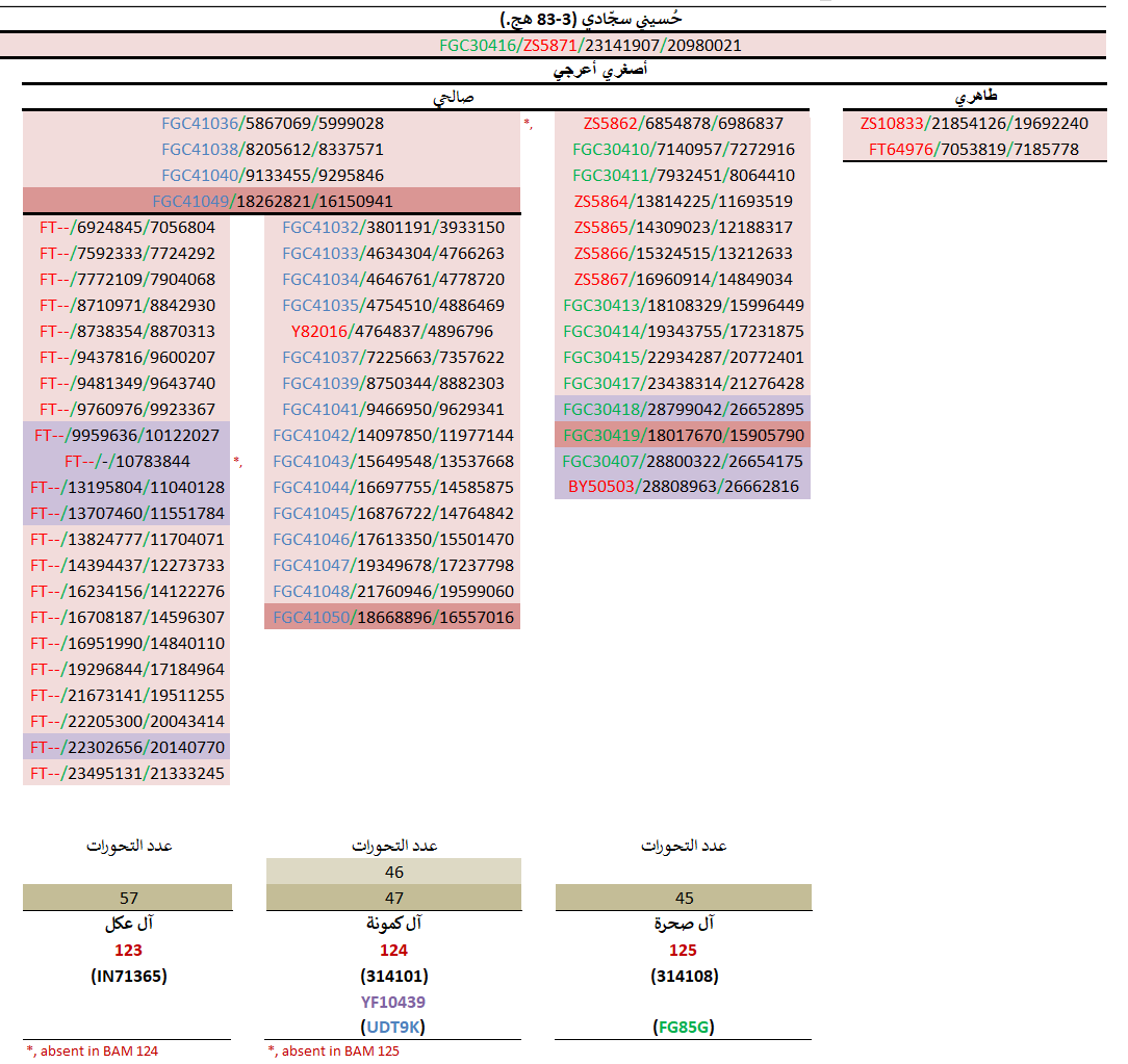 - نتمنى تطوير عيّنة السادة الجلالي الصالحي الأعرجي والحصول على عيّنات إضافيّة للسادة الشاهرودي وأخرى من دير الزور حتى تتبيّن لنا الفروع المُتنوعة وتداخلها بشكل أفضل.