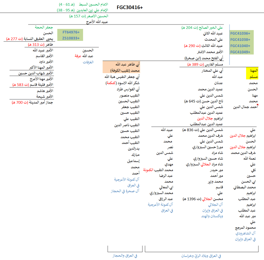 - موجبة لأربع تحوّرات خاصّة بعيّنة النسابة ونقباء مدينة الكوفة تاريخيّاً، السادة آل كمونة الصالحي الأعرجي الحُسيني.