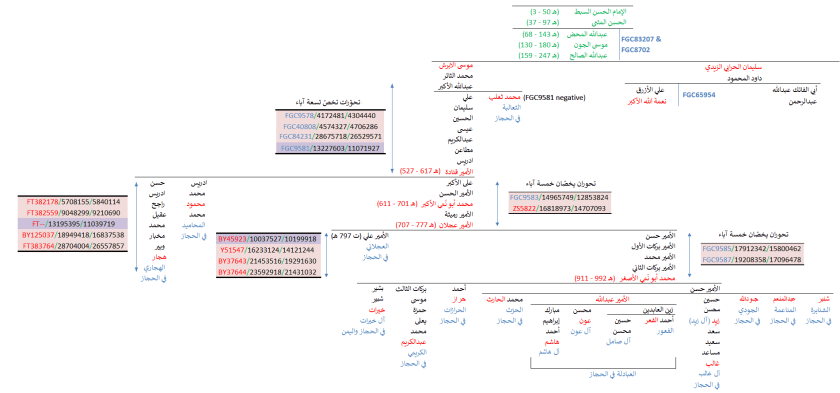 مواضيع مُتعلّقة: تحديث عينة الأشراف الهجاري ، نتيجة الأشراف العنقاوية ، تحديث نتيجة الأشراف المجايشة ، تحديث نتائج السادة القتادات ، مُشجّر الأشراف العجالين الجيني ، عيّنات الأشراف آل حسن العجالين Y700 ، نتيجة الأشراف آل عون العبادلة ، عيّنات الأشراف العبادلة ، نتيجة الأشراف آل هاشم العبادلة ، نتيجة الأشراف آل صامل العبادلة ، نتيجة الأشراف الفعور العبادلة ، تحديث مُشجّر الحرّازت الجيني ، STR النموي