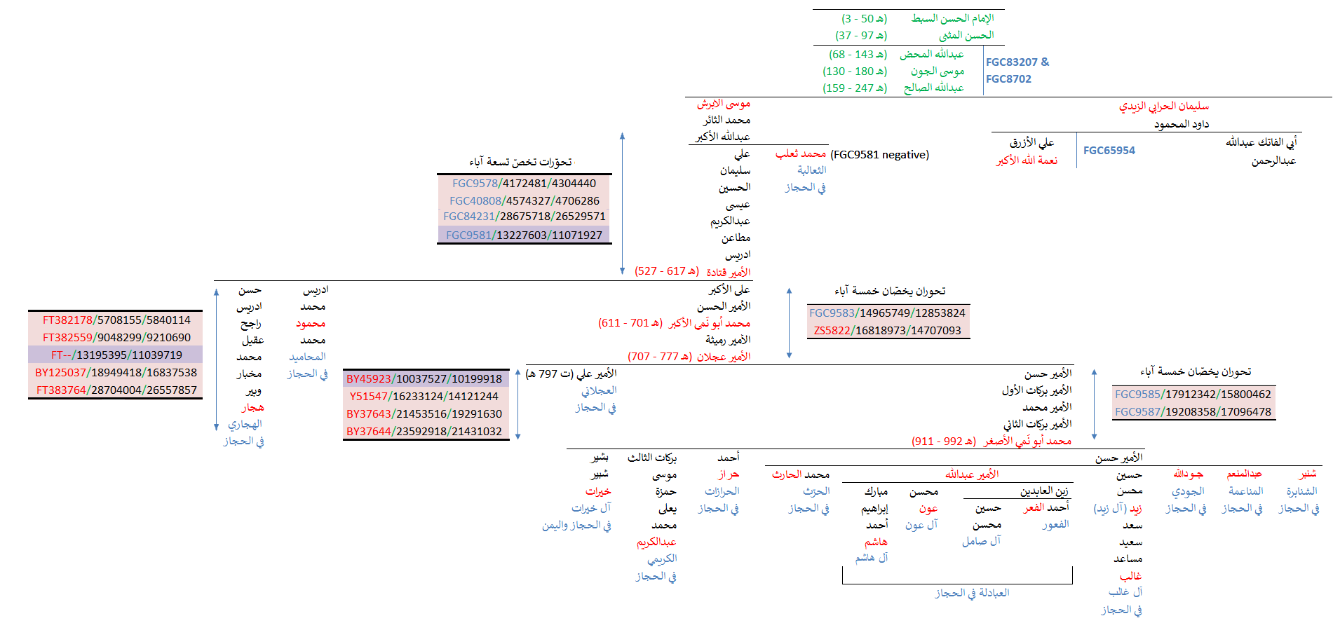 مواضيع مُتعلّقة: ساحل اللآلئ الحسنيّة الموسوية ، التحور الحسني المحضي الموسوي ، تحديث نتائج السادة القتادات ، نتيجتيّ Y700 للأشراف الهجاري ، نتيجة الأشراف العنقاوية ، تحديث نتيجة الأشراف المجايشة ، مُشجّر الأشراف العجالين الجيني