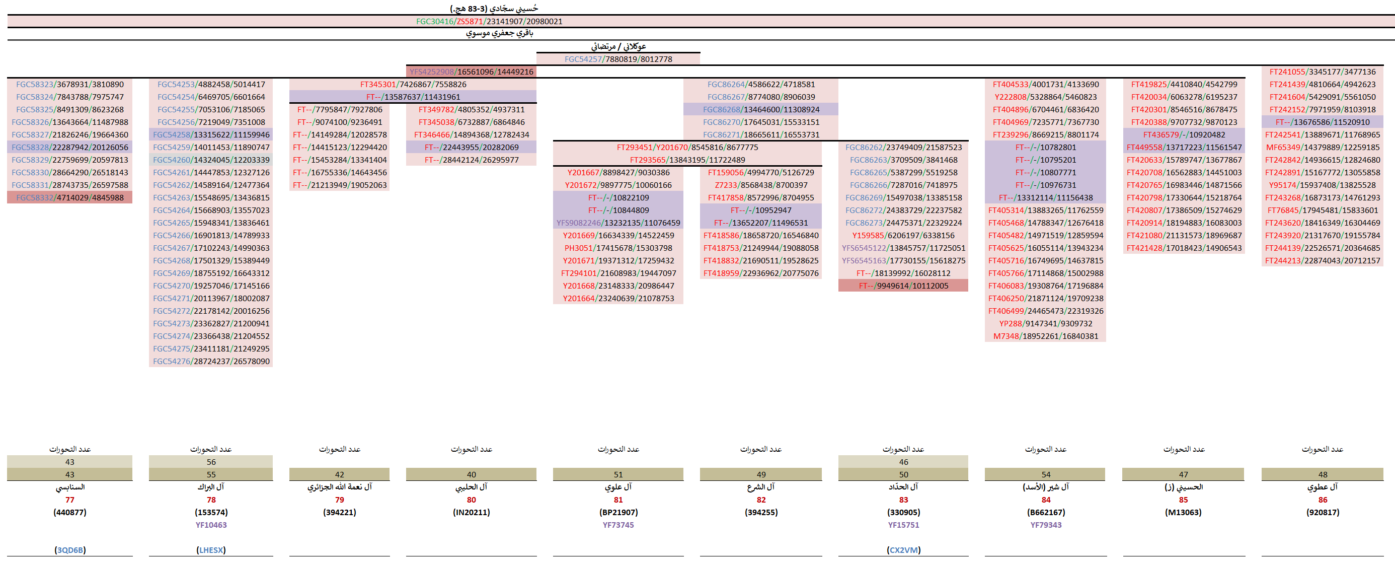 مواضيع مُتعلّقة: نتيجة آل عطوي الموسوي Y700 ، نتيجة السادة آل شير الأسد Y700 ، نتيجة السادة الحُليبي الموسوي Y700 ، نتيجة السادة آل الجزائري الموسوي Y700، تحديث نتيجة آل البراك ، نتيجة السادة آل الشرع الموسوي Y700 ، نتيجة السادة آل الحدّاد FGC ، نتيجة السادة آل العلوي Y700 ، تحديث نتيجة السادة آل المُقبّل الموسوي ، نتيجة السادة آل الشرفا الموسوي ، نتيجة السادة آل الشريف الموسوي ، عينة السادة آل عيسى الموسوي ، نتيجة السادة آل الهاشم الموسوي ، نتيجة السادة آل كاظم الموسوي ، تحديث نتيجة السادة آل طالب ، نتيجة ثالثة لآل السادة ، نتيجة ثانية للسادة آل العوامي ، التحور الموسوي الفرعي FGC54257 ، قراءات في التحور FGC54257 ، هواشم شرق الجزيرة ، مخطوط نسب السادة آل عطوي الموسوي ، مُشجّر السادة العوكلانيّة الموسويّة