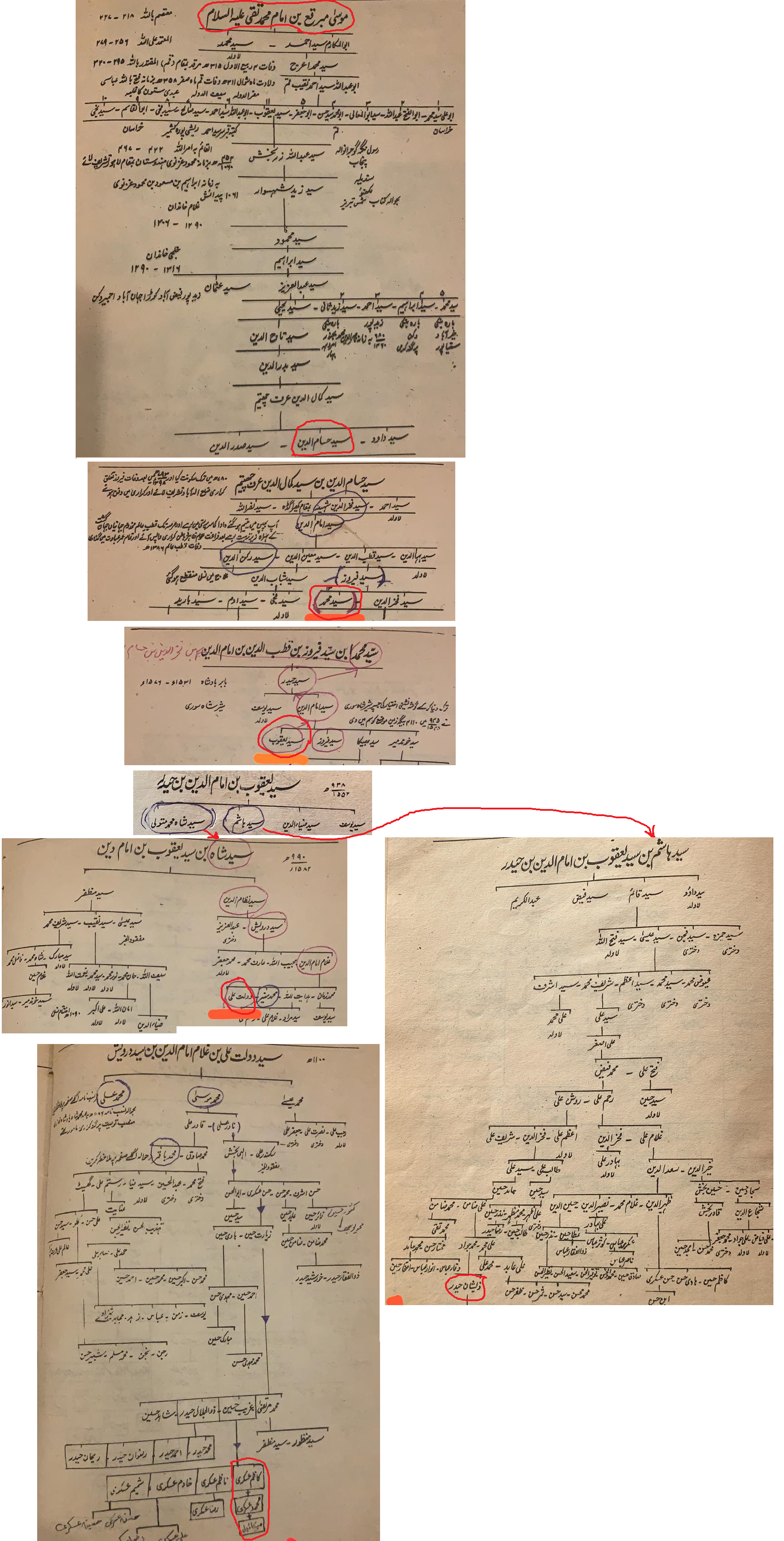 وهذه نسخة عن مشجراتهم المحفوظة في كُتُبِهم، إذ أنّ آباءهم كانوا وزراء “فُرس” ومراجع دين في دولة المُغُل المُسلمة (التي حكمت شمال الهند لقرون عديدة) وكان لهم القدرة الماليّة والعلميّة على التدوين وحفظ النسب الشريف: