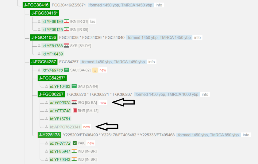 كما ظهر مع هذه النتيجة في YFull، نتيجة عيّنة دراسيّة من الشام (من أصول عامليّة مُتأخّرة). سنعرض تفاصيلها الكاملة متى ما انضمّت للمشروع. وهكذا بدا موقعها في مُشجّرهم الجيني: