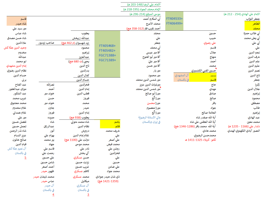 وهذا تذكير بعامود نسبهم مقارنةً بالعيّنات الباكستانيّة الموجودة لدينا في المشروع، بعدما تم توزيع التحورات الأربع المشتركة بين السيد كمال الدين والسيد أحمد النقيب: