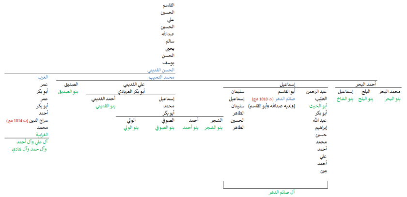 - موجبة ل6 تحوّرات مشتركة مع بني عمومتهم السادة آل صائم الدهر القديمي.