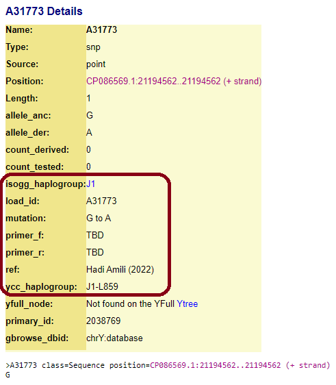 يُسعدنا ويُشرّفنا الإعلان عن توثيق وتشفير تحوّر الإمام الحسن المُجتبى (ع) A31773 الجامع لكافة فروع السادة الحَسَنيّة (إلى الآن)، على موقع شريط ChrY التالي، بحسب قراءة المرجع CP086569.1 (أو ما يُعرف بT2T):