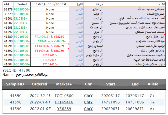 ظهرت نتائج 13 عيّنة من فروع متنوّعة للسادة البدور وآل راجح الجمامزة الأعرجيّة الحُسينيّين من مدينة قِنا الصعيديّة –والأصل من المدينة المنوّرة مع عودة بعض فروعهم إليها بهجرة عكسيّة عبر طريق القصير-الوجه البحري-، وهي فاحصة لدى YSEQ وموجبة جميعها لتحوّر الإمام علي (ع) FGC10500 أو التحوّر الطاهري العقيقي ZS10833. مبارك لهم.