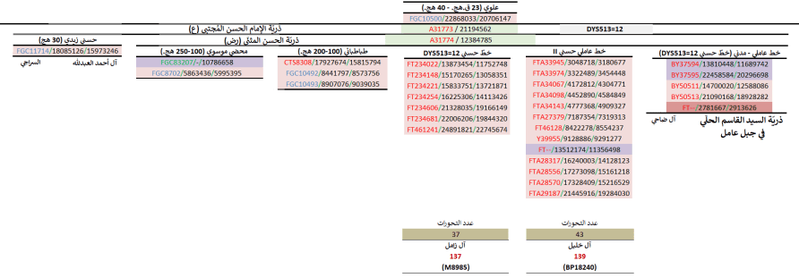 - سالبة للتحوّر الحسني الفرعي العاملي-المدني BY37595 الخاص بذريّة السيّد قاسم الحلّي-العاملي وآل ضاحي في المدينة-الوجه.