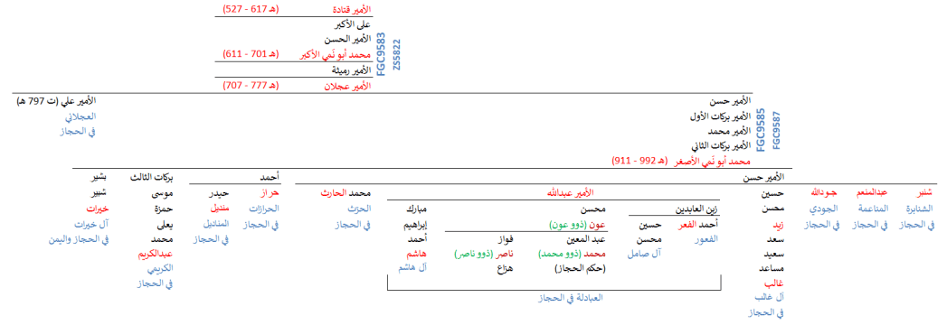 وتُعتبر أسرة الشريف حسين بن علي (آل عون العبادلة) من أبرز العوائل العبدليّة العونيّة وأشهرها، وكان لها بروز سياسي في مطلع القرن الماضي في كُلّ من الحجاز والعراق والأردن. وهذا مُشجّر خاص بهم: