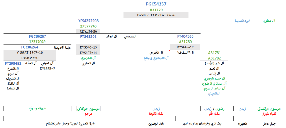 وهكذا بدا تكتّل FGC54257 الجينو-تراثي المختصر بتحوّراته الفرديّة SNPs والمتكرّرة STRs ومواريثه الحُسينيّة المُتنوّعة: