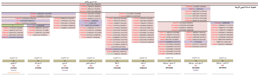 وهذا مُشجّر يوضح تسلسل نسب هذه العوائل الكريمة مع تصنيف بعض التحوّرات داخله (كإحتمال يحتاج التدقيق):