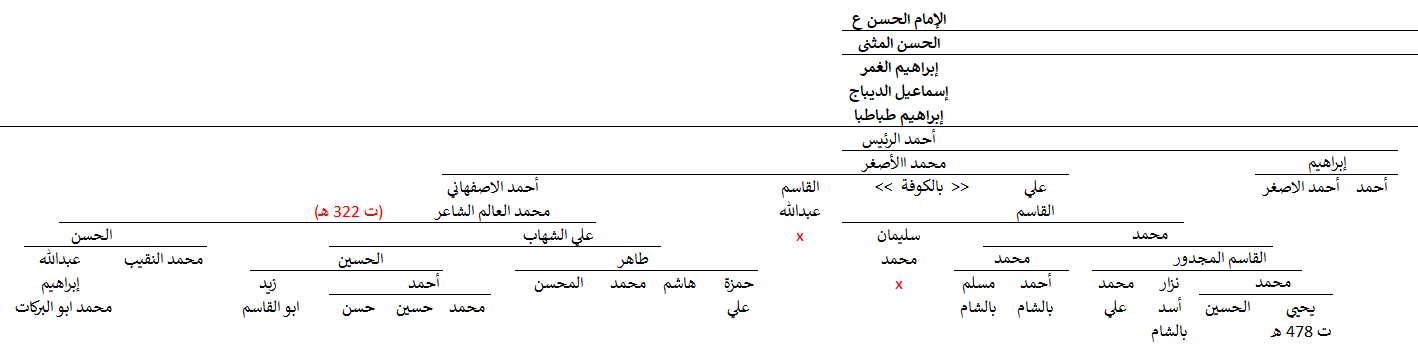وهذا تذكير بمُشجر السادة الطباطبائيّين الرئيسيّين الجيني المُختصر: