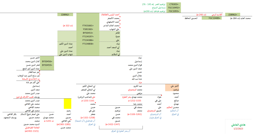 مواضيع مُتعلّقة: تحديث عينة السادة آل بحر العلوم ، تحديث عينة السادة آل طباطبائي ، نتيجة السادة آل مير حُسيني الطباطبائي Y700 ، نتيجة السادة آغازادا Y700 ، نتيجة آل ماضي “الرسّي الحسني” ، نتيجة السادة آل يعقوب والناشري BigY ، نتيجة Y700 للسادة آل المؤيد الطباطبائي ، نتيجة السادة آل إسحاق الرسي الحسني ، نتيجة السادة حميد الدّين BigY ، نتيجة السادة المقابيل الرسّي Y700 ، تحديث نتيجة السادة الشهاري ، نتيجة السادة آل ياسين BigY ، نتيجة ثانية للسادة آل الشامي الرسّي ، نتيجة السادة الحكيم BigY ، تحديث ثاني للسادة شمس الدين ، نتيجة BigY للسادة الطباطبائي ، عينة ثانية للسادة الشرفي ، نتيجة Y700 للسادة آل شكر القحوم الرسّي ، آل طباطبا في مصر ، منازل الطباطبائيّين في فَرع المدينة