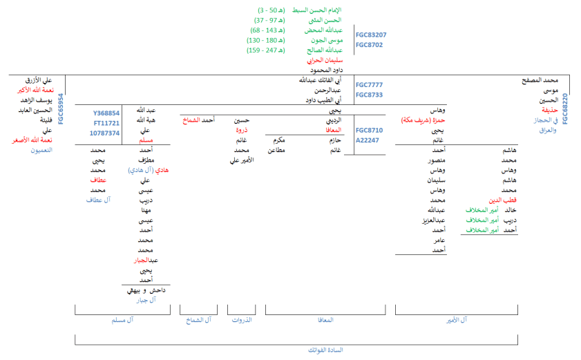 - نحتاج عيّنة للسادة الأمير القطبيّون لتبيان التحوّرات العُليا الجامعة لذريّة شربف مكة الحمزة بن وهّاس بن أبي الطيّب داوود.