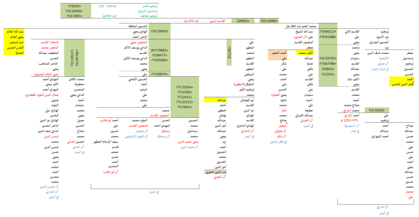 - موجبة لتحوّرات الداعي يوسف الأشل وحفيده الحسين الأملحي الصنعاني المُشتركة (الأربع SNPs) والمتكرّرة، DYS532=12.
