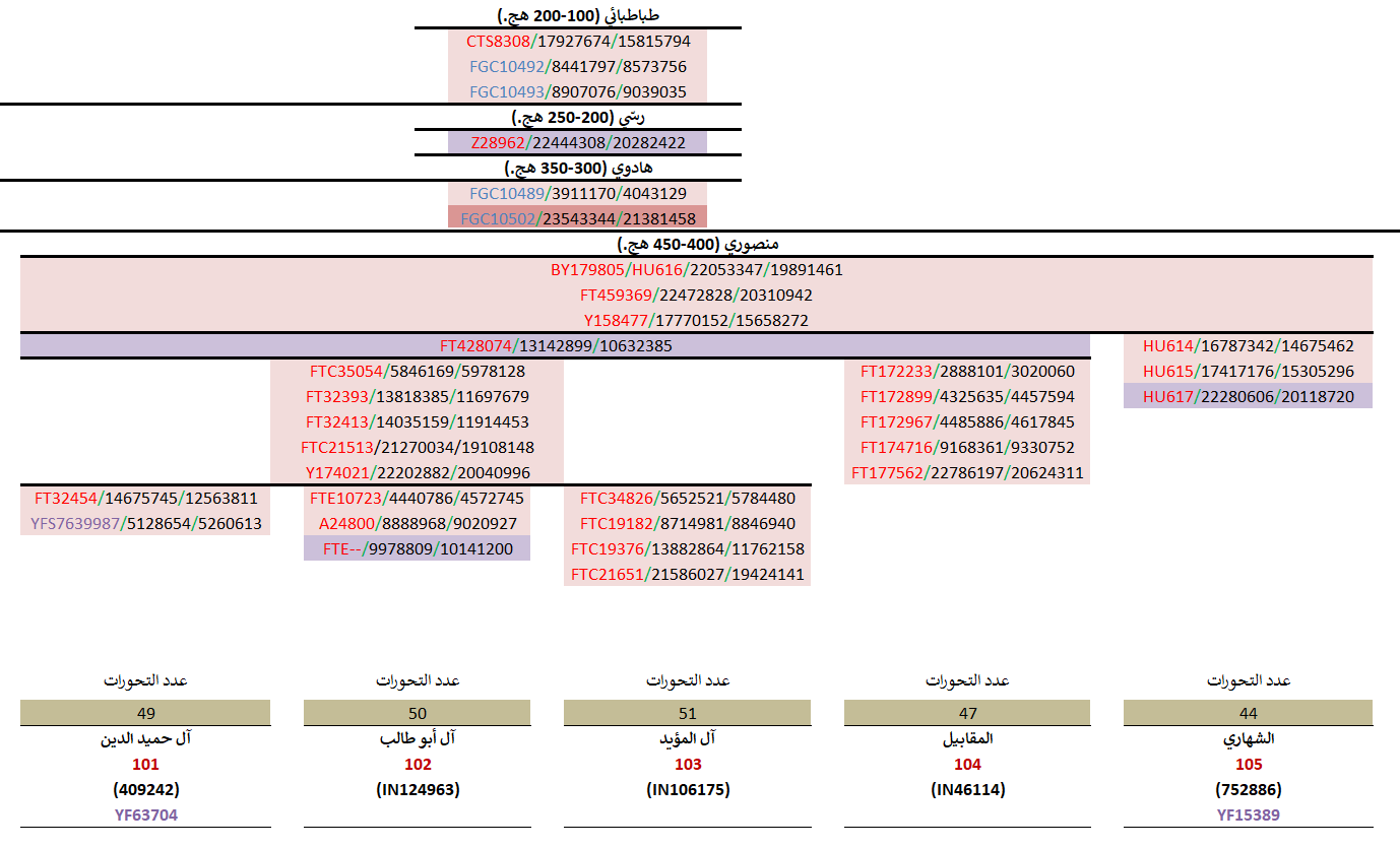 - موجبة لتحوّرات الداعي يوسف الأشل وحفيده الحسين الأملحي الصنعاني المُشتركة (الأربع SNPs) والمتكرّرة، DYS532=12.
