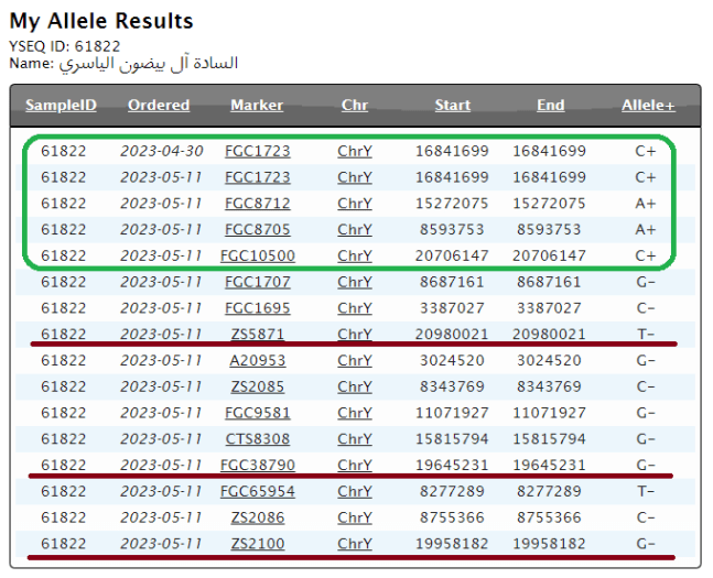 مواضيع مُتعلّقة: ثلاث عيّنات للسادة حسنيّو الفوعة ، نتيجة السادة آل سيّد محسن الحسني ، BY37594 ، نتيجة السادة آل سيد عيسى العاملي Y700 ، نتيجة السادة آل خليل العاملي Y700 ، نتيجة السادة الزاملي Y700 ، نتيجة السادة السراجي الحسني WGS ، تحديث نتائج السادة آل زهرة الحُسينيّين ، خطوط العلويّين العامّة
