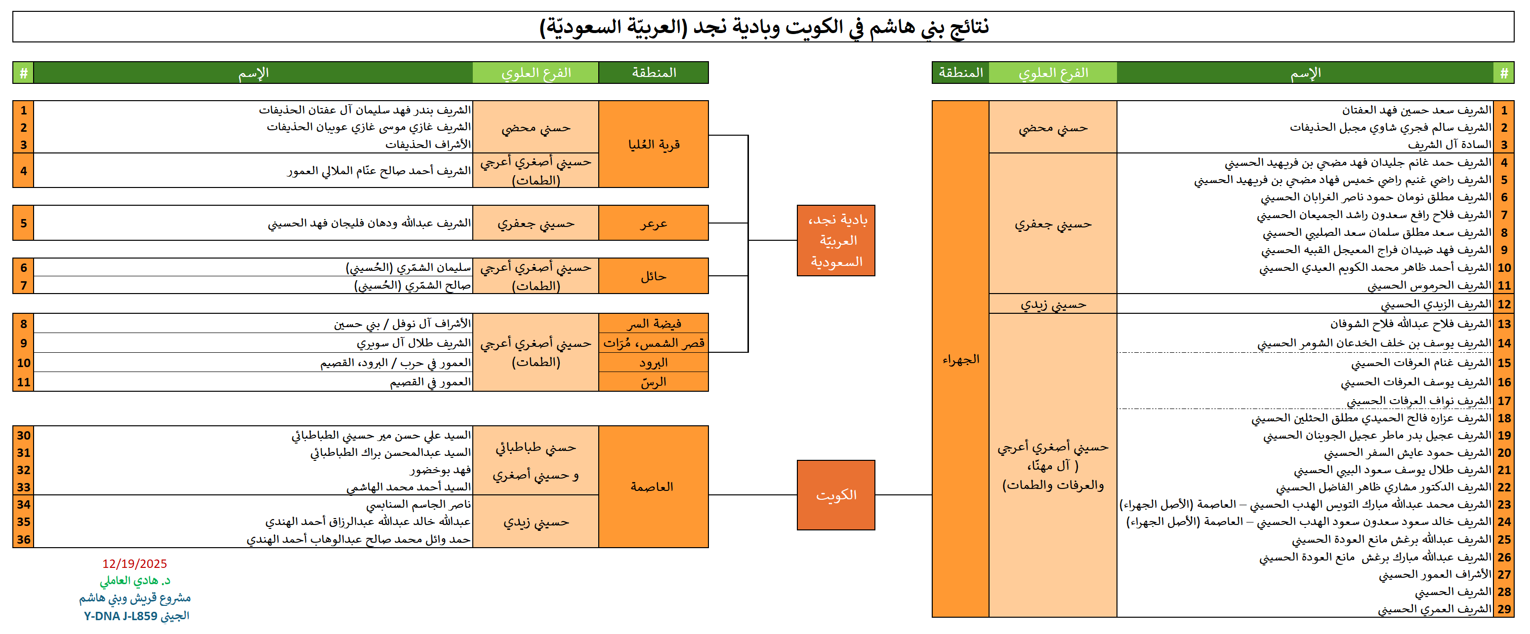 الإصدار والتحديث الثاني لقوائم ومشجّر أسماء الأُسر العلويّة في دولة الكويت وبادية نجد التي تطابقت نتائجها مع العلامة الجينية L859: