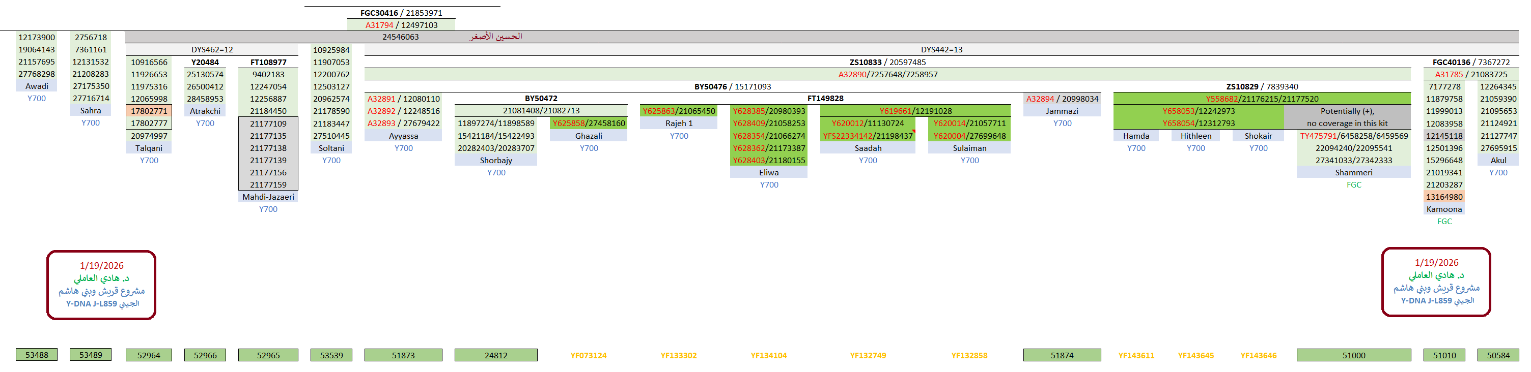 ظهرت نتيجة Y700/111-STRs/YFull لعيّنة السادة آل شقير الودمة الطمات الأعرجيّة الحُسينيّين (إحدى أُسَر آل حمدان من بني حسين، المتّصلين مع السادة آل حثلين في حمدان بن وديم) من حفر الباطن وقرية العُليا في أعالي بادية نجد الشرقيّة والجهراء في الكويت (مع أصول ترجع إلى المدينة المُنوّرة وباديتها)، وجاءت موجبة للتحوّرات القرشيّة (L859) والطالبيّة (FGC8703) والعَلَويّة (FGC10500) والحُسينيّة (FGC30416). مبارك لهم.