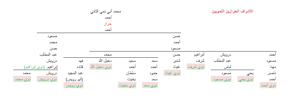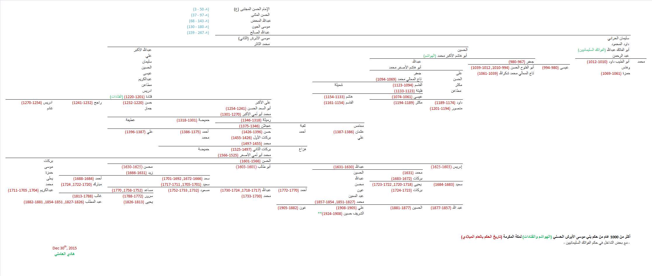4) مشجر بني موسى الأبرش (الهواشم والقتادات) – أمراء مكة المكرمة. أكثر من 1000 عام حُكْم لمكة المكرمة مع بعض التداخل للفواتك السليمانيين: