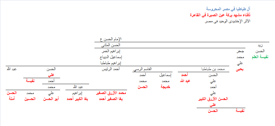 2) مشجر يُبرز أسماء آل طباطبا الذين سكنوا مصر المحروسة ودفنوا فيها خلال القرنين الثالث والرابع الهجري (العهد الإخشيدي):