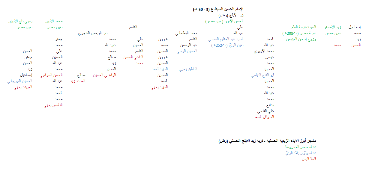 1) مشجر أبرز الآباء الزيدية الحسنية – ذرية زيد الأبلج الحسني (رض) – الذين عاشوا بين المحروسة وبلاد الريّ واليمن: