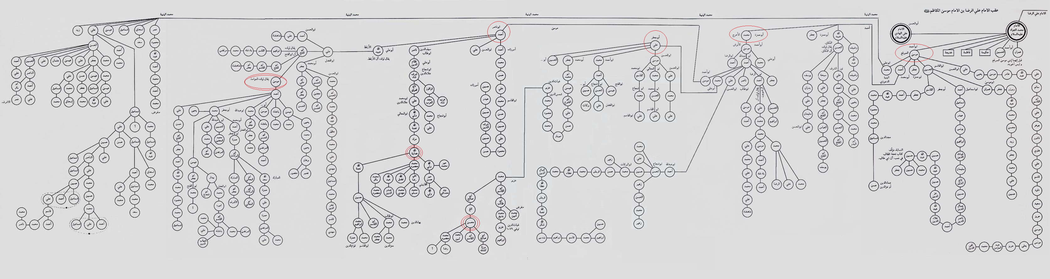 1) مشجر السادة الرضويّة، ذُريّة السيّد موسى المبرقع بن الإمام علي بن موسى الرضا (ع)، بحسب كتاب تحفة الأزهار للعلامة الحسيني الأعرجي المهانّي ابن شدقم: