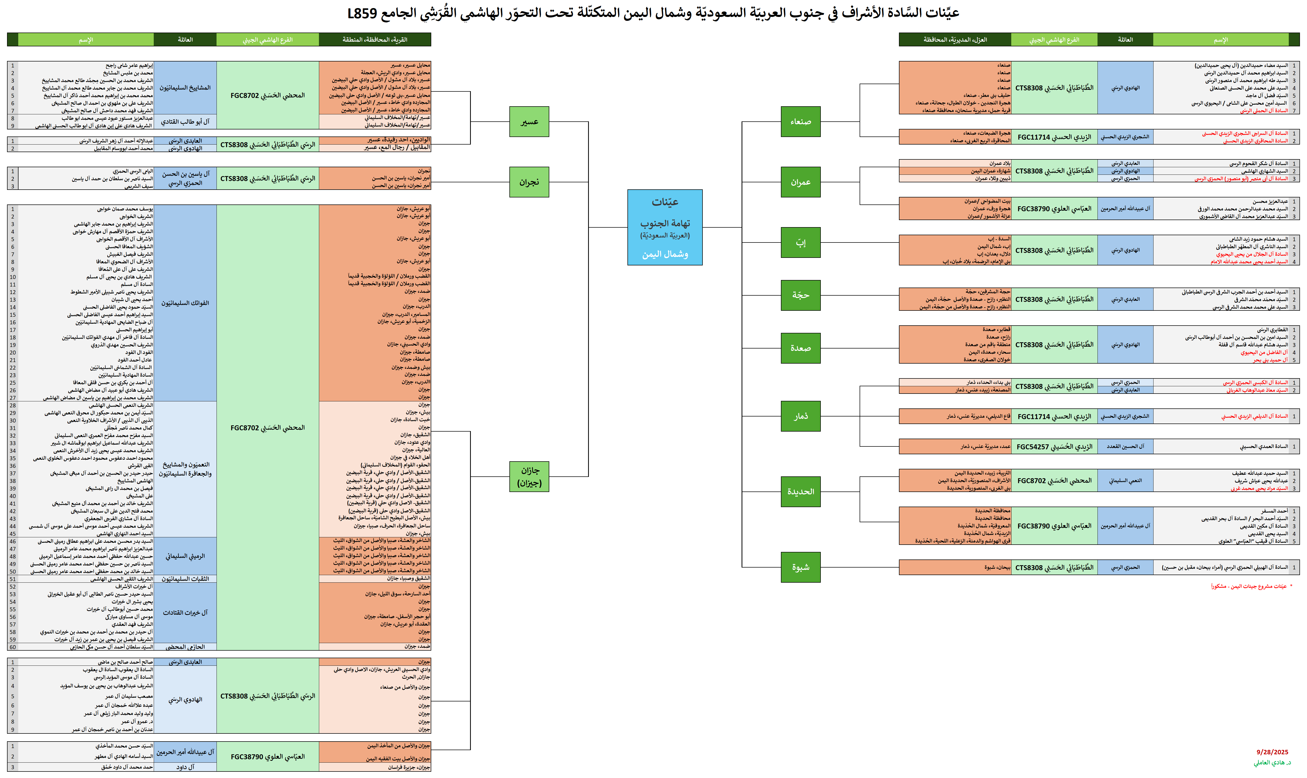 وهكذا بدا التحديث الجديد لمُشجّر الأشراف البدور الجيني بتحوّراته الخاصّة والمُشتركة الجديدة (مضموماً له باقي خطوط آل مهنا الجينيّة، من البدور والشويخات والكراوين والعياسا وباقي أولاد شيحة وآل جماز الثاني):