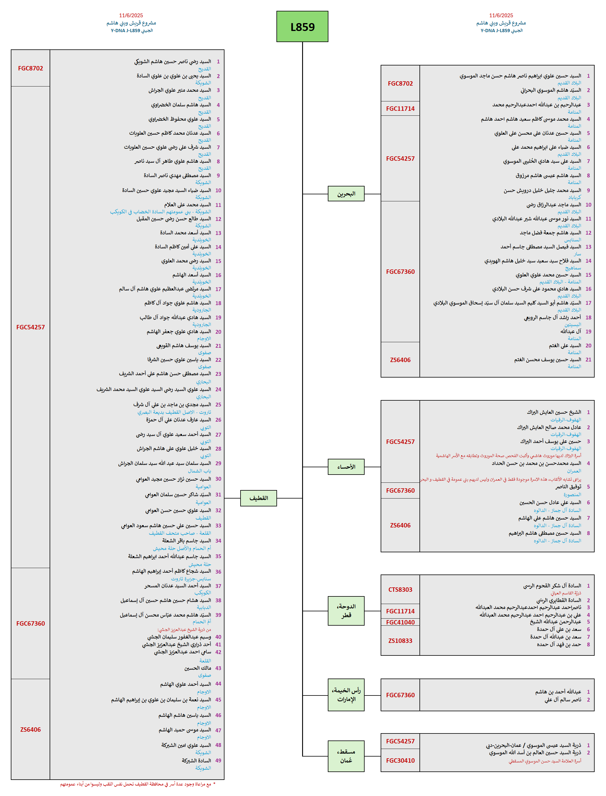 - موجبة للتحوّرات الخاصة بذريّة الشريف عمير بن القاسم بن جمال الدين جماز الأول (DYS549=14 و FT149828)، البدور والنوائل.