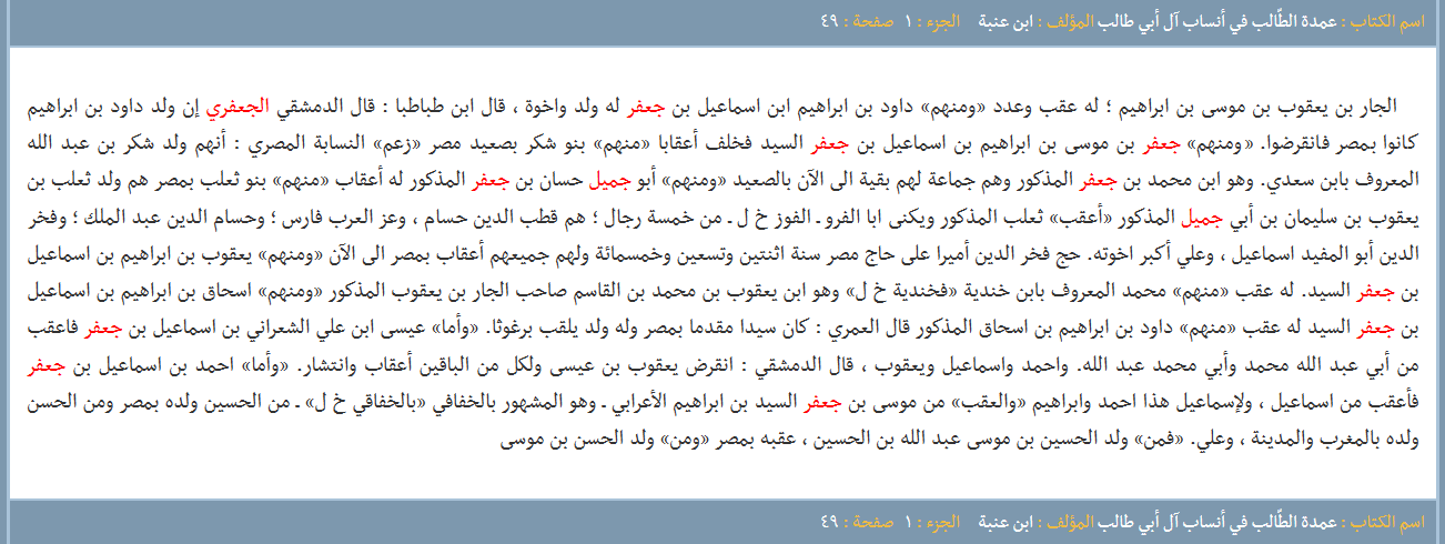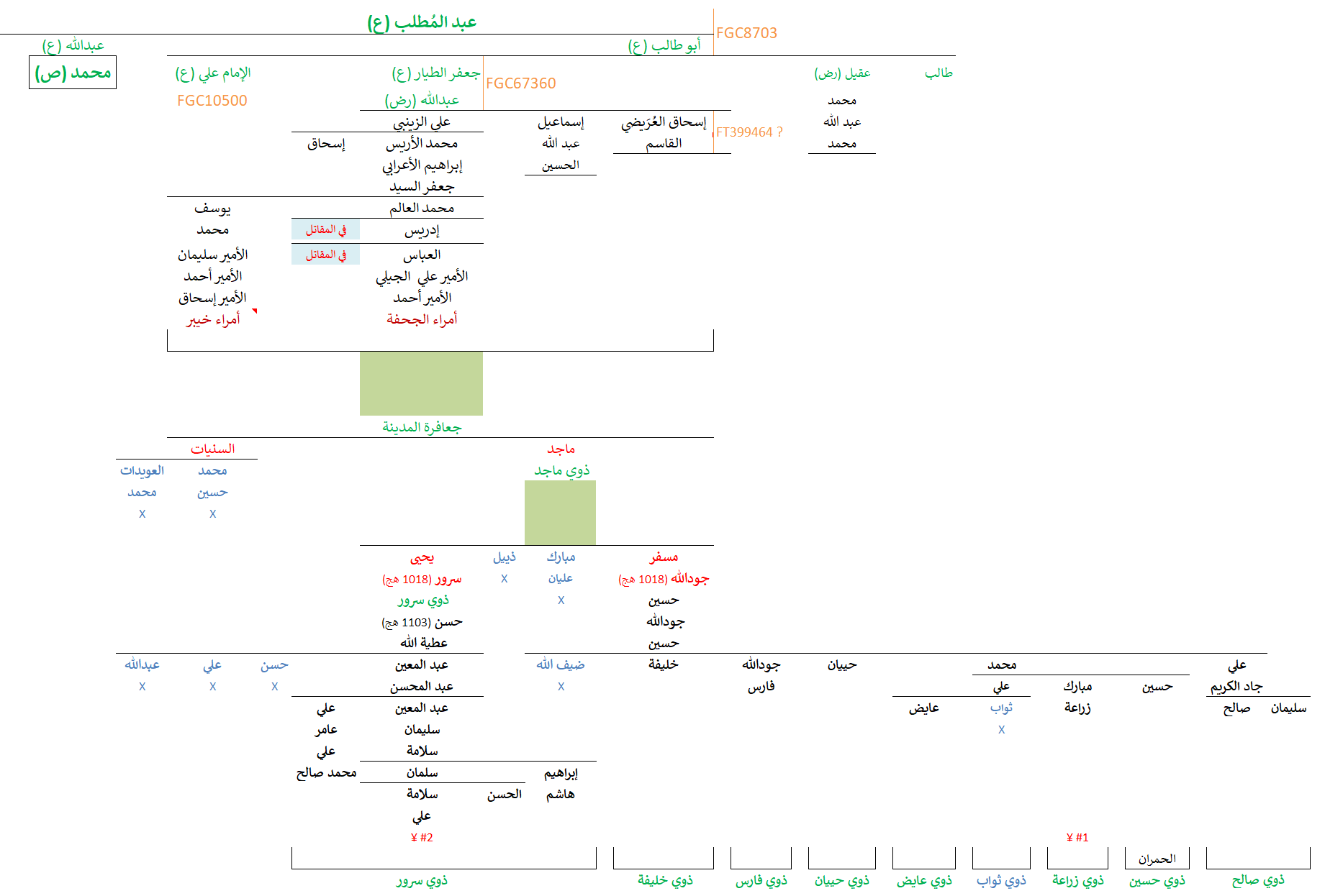 مواضيع مُتعلّقة: آل طباطبا في مصر ، منازل الطباطبائيّين في فَرع المدينة ، شواهد الرسّيين التاريخية ، نتيجة BigY للسادة الطباطبائي ، نتيجة السادة حميد الدّين BigY ، نتيجة السادة الحكيم BigY ، نتائج السادة آل الشرفي الرسّي Y700 ، نتيجة السادة آل بحر العلوم الطباطبائي Y700 ، نتيجة السادة آل طباطبائي Y700 ، أنا جعفر بن محمد ، شواهد الجعافرة التاريخية ، شواهد بني محمد الثائر في مكة ، نقود معدنيّة علويّة ، مشاهد ومشاعر مكّة المُكرّمة ، مشاهد ومزارات المدينة المُنوّرة ، مشاهد ومزارات الكوفة والنجف الأشرف ، طبا = سيّد