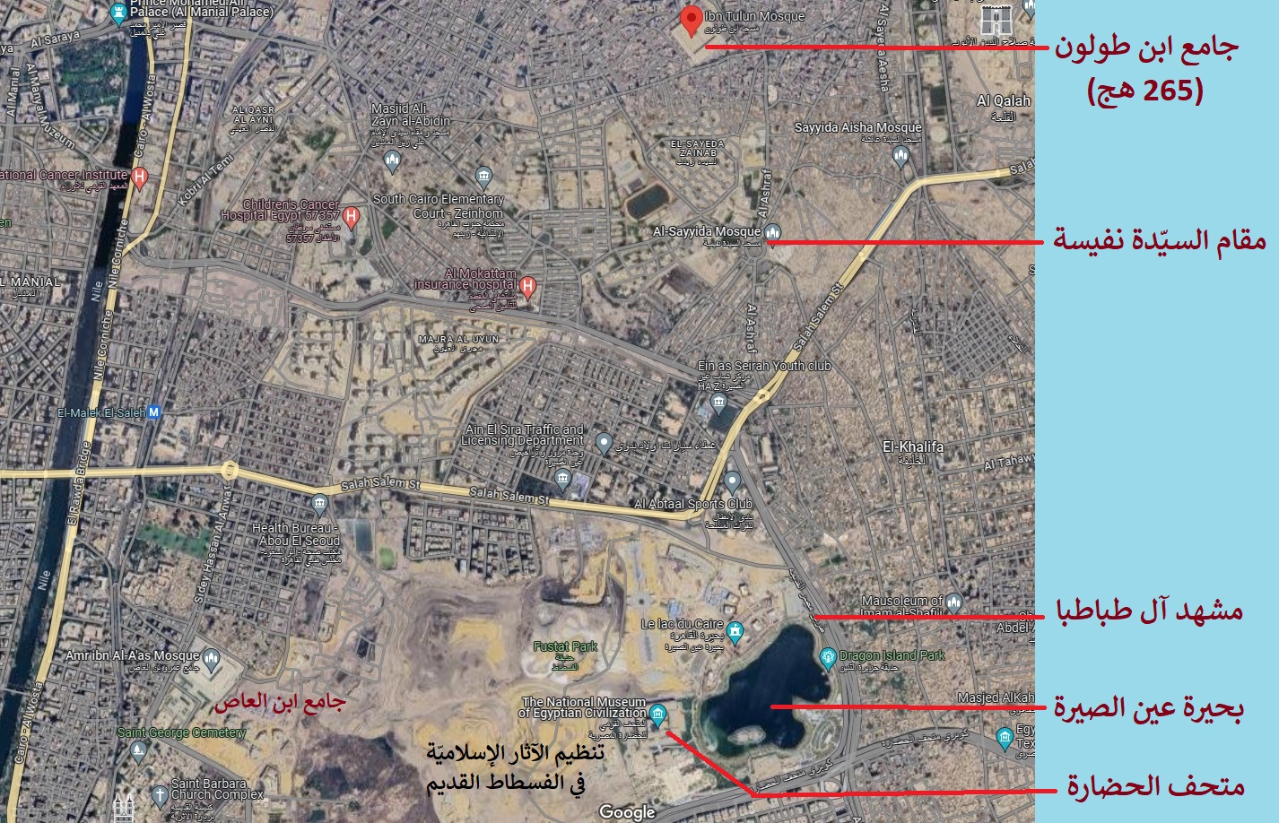 وكان هذا الأثر التاريخي غارقاُ تحت الماء، إلّا أنّ الدولة أنقذته مؤخّراً ضمن حملة واسعة لتنظيم الآثار الإسلاميّة في الفسطاط القديم. وهذه صورة تفصيليّة توضح مكانه الحالي شرق متحف الحضارة المصريّة: