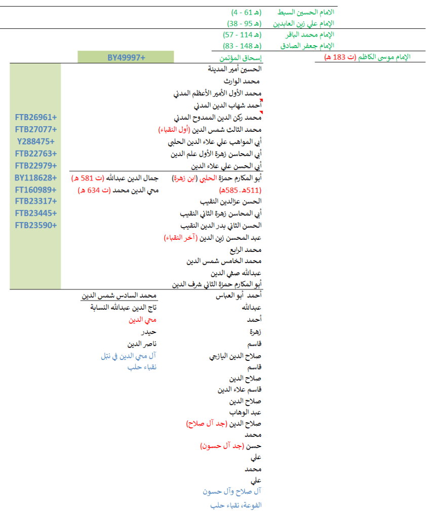 - موجبة ل9 تحوّرات من أصل 11 مُشتركة بينها وبين بني عمومتهم السادة آل مرتضى (الشامي والشقطي).