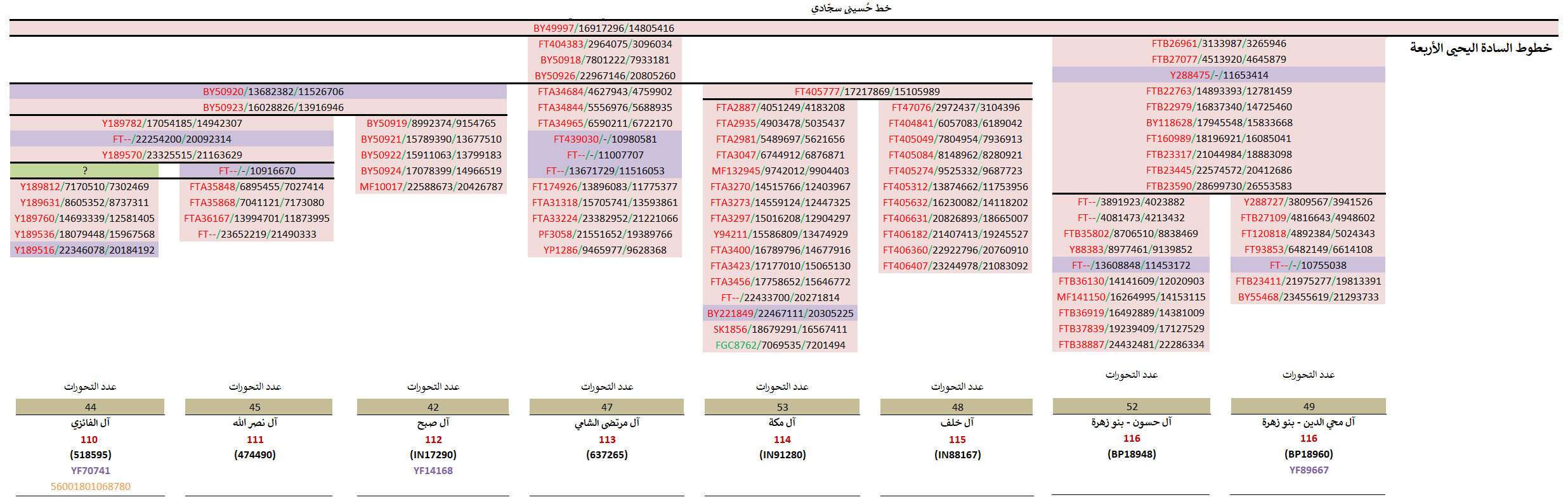 - سالبة لتحوّرات خطوط السادة اليحيى الأربع ولتحوّرات خطّ السادة بني زُهرة الفرعيّة.