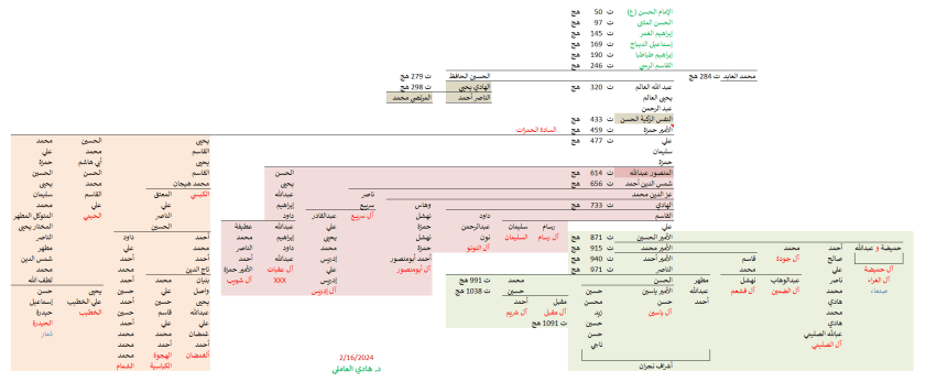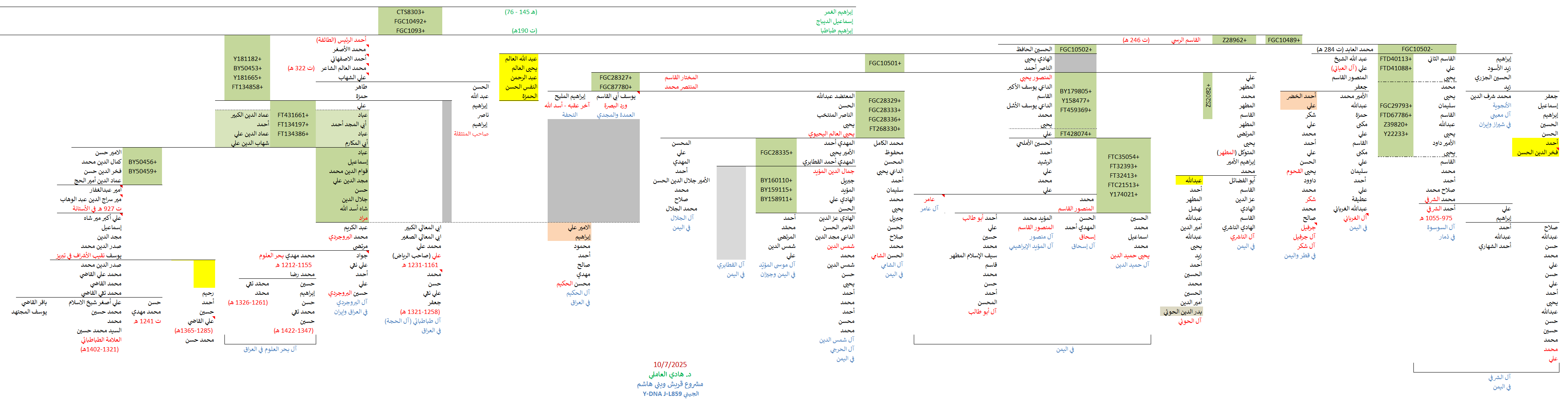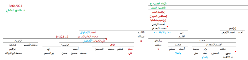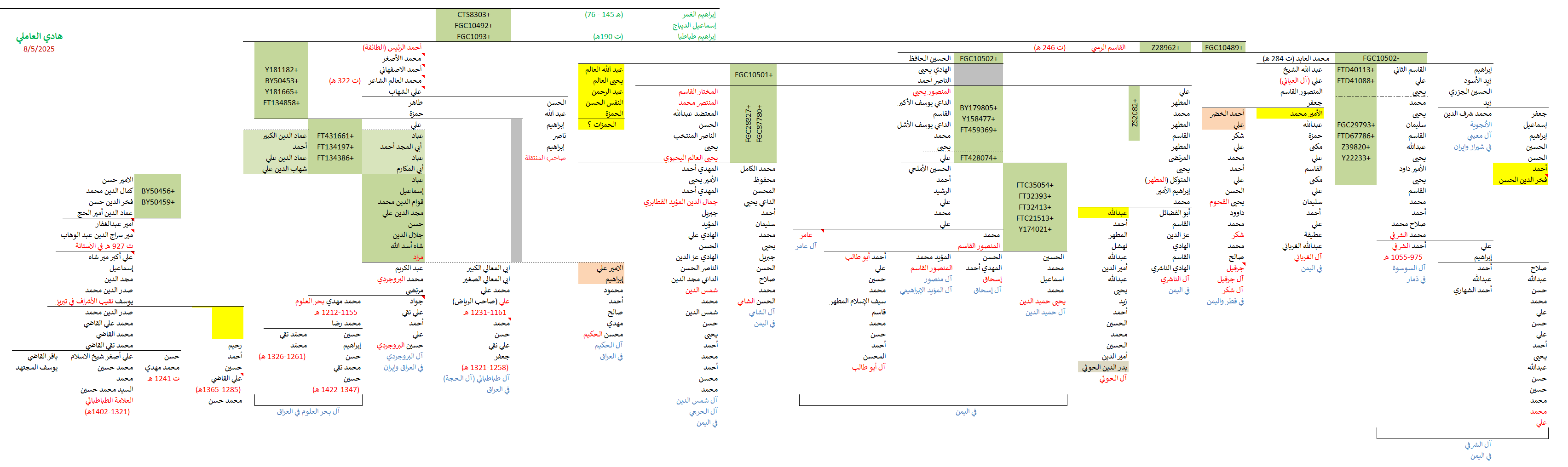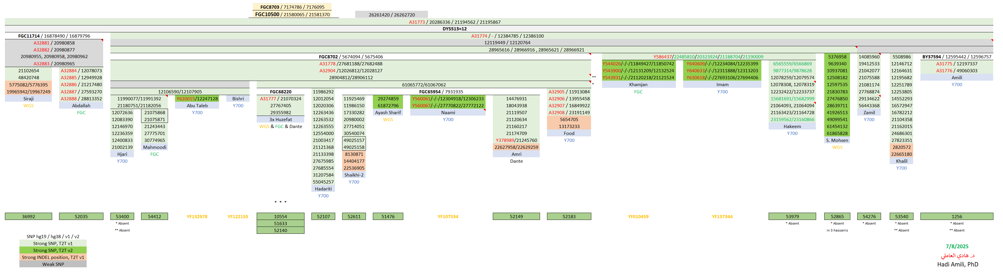 - مشجّر T2T الحسني: حيث اجتمعت عيّنات السادة آل الحكيم وآل خمجان وآل إمام بتحوّر جيني رسّي جامع Y586437.