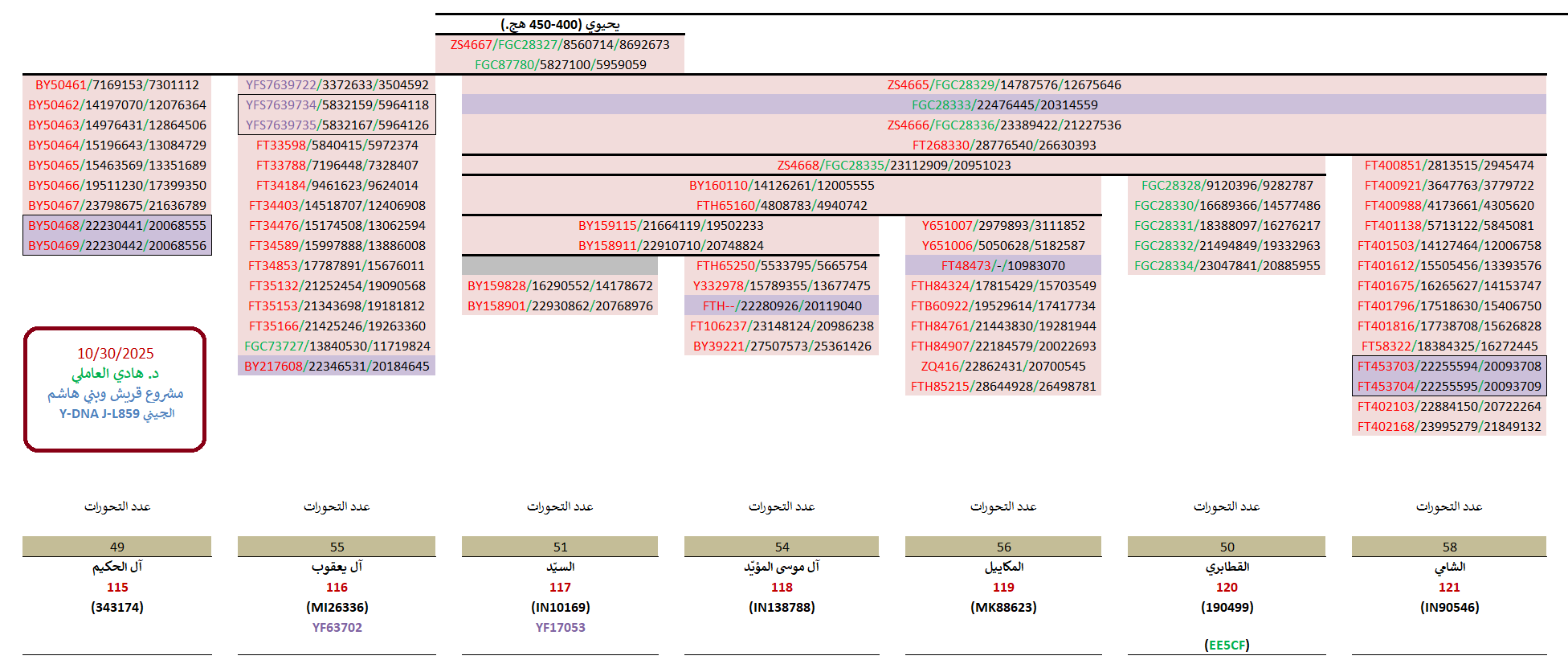 - تمّ إضافة التحوّر الهادوي الناصري الجديد FGC10501 في YSEQ وطلبه لبعض عيّنات الخطوط الرسيّة التي افتقرت ملفاتها BAM في تغطيته سابقاً (الخطّ المنصوري والمطهري والحمزي وعيّنتيّ آل إمام وآل أبو نبّوت الطباطبائي).