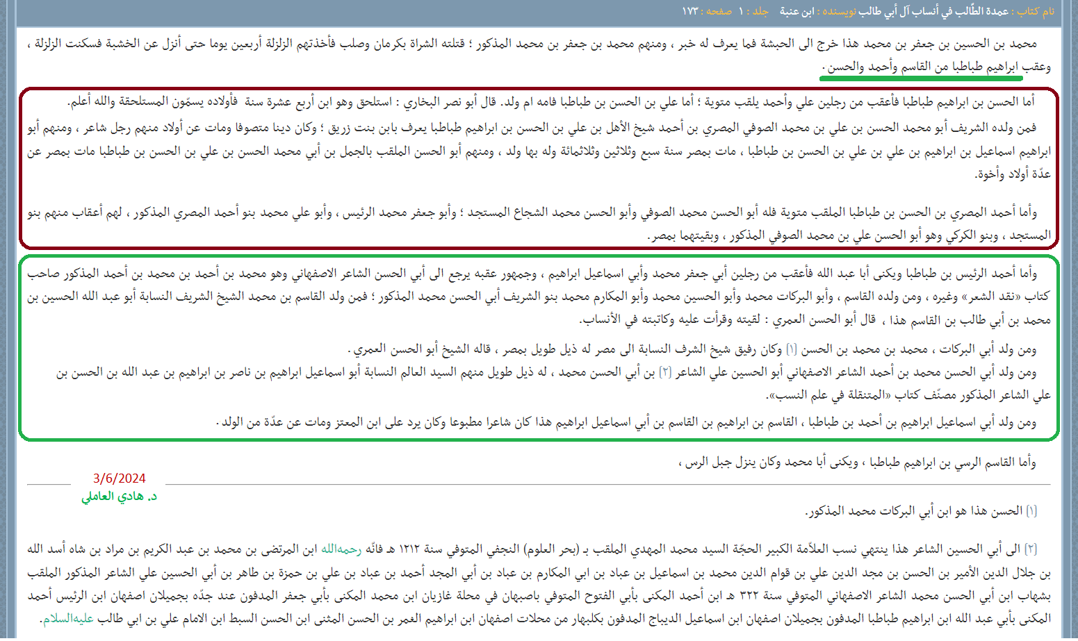 مواضيع مُتعلّقة: نتيجة السادة آل المؤيّد الرسّي Y700 ، نتيجة السادة آل الشامي الرسّي Y700 ، نتيجة ثانية للسادة آل الشامي الرسّي ، نتيجة السادة الحكيم BigY ، تحديث ثاني للسادة شمس الدين ، نتيجة السادة آل يعقوب والناشري BigY ، منتقلة ذريّة إبراهيم الغَمْر (الطباطبائيّة والرسيّة وغيرهم) ، نتيجة WGS للسادة آل الحملي الرسّي ، نتيجة Y700 للسادة آل إمام الطباطبائي ، نتيجة BigY للسادة الطباطبائي ، تحديث نتيجة السادة آل خمجان الرسّي T2T ، نتيجة السادة آل عمر الزيلعي Y700 ، نتيجة Y700 للسادة آل أبو طالب الرسّي ، نتيجة Y700 للسادة آل المؤيد الطباطبائي ، نتيجة السادة آل إسحاق الرسي الحسني ، نتيجة السادة حميد الدّين BigY ، نتيجة السادة المقابيل الرسّي Y700 ، تحديث نتيجة السادة الشهاري ، نتيجة السادة آل ياسين BigY ، نتيجة السادة آل الكبسي الرسي ، نتيجة السادة آل أبي منصر الحمزي الرسي ، نسب السادة آل شريم الرسّي ، نتائج السادة آل الشرفي الرسّي Y700 ، نتائج السادة آل زهر الرسّي Y700 ، نتيجة Y700 للسادة آل ماضي الرسّي ، نتيجة Y700 للسادة آل شكر القحوم الرسّي ، المزيد من شواهد الطباطبائيّين التاريخية في مصر ، آل طباطبا في مصر ، منازل الطباطبائيّين في فَرع المدينة
