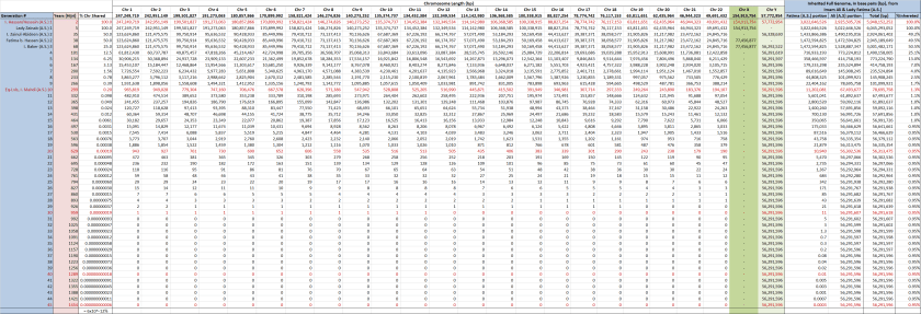 6. لم نُدخل الحمض المُتَقَدِّرِي الأنثوي (mitochondrial DNA أو mt-DNA) في حسابتنا لعدم تدوين خطّ أسماء الأمهات عبر العصور.