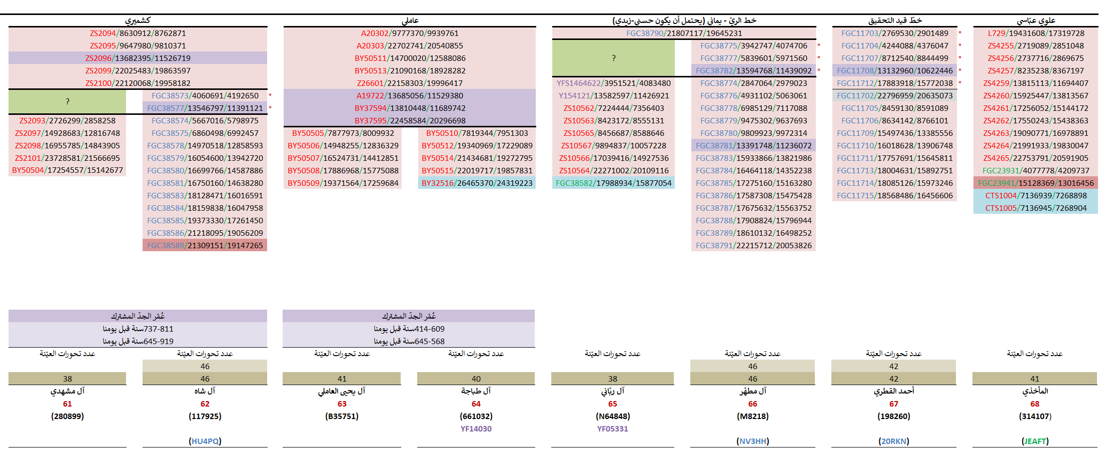 ولا زالت هذه الخطوط والتكتّلات الجينيّة (ما خلا العبّاسي-العلوي) تنتظر تحديد عامود نسبها عبر ظهور عيّنات جديدة واضحة النسب تشترك معها بتحورّات عُليا.