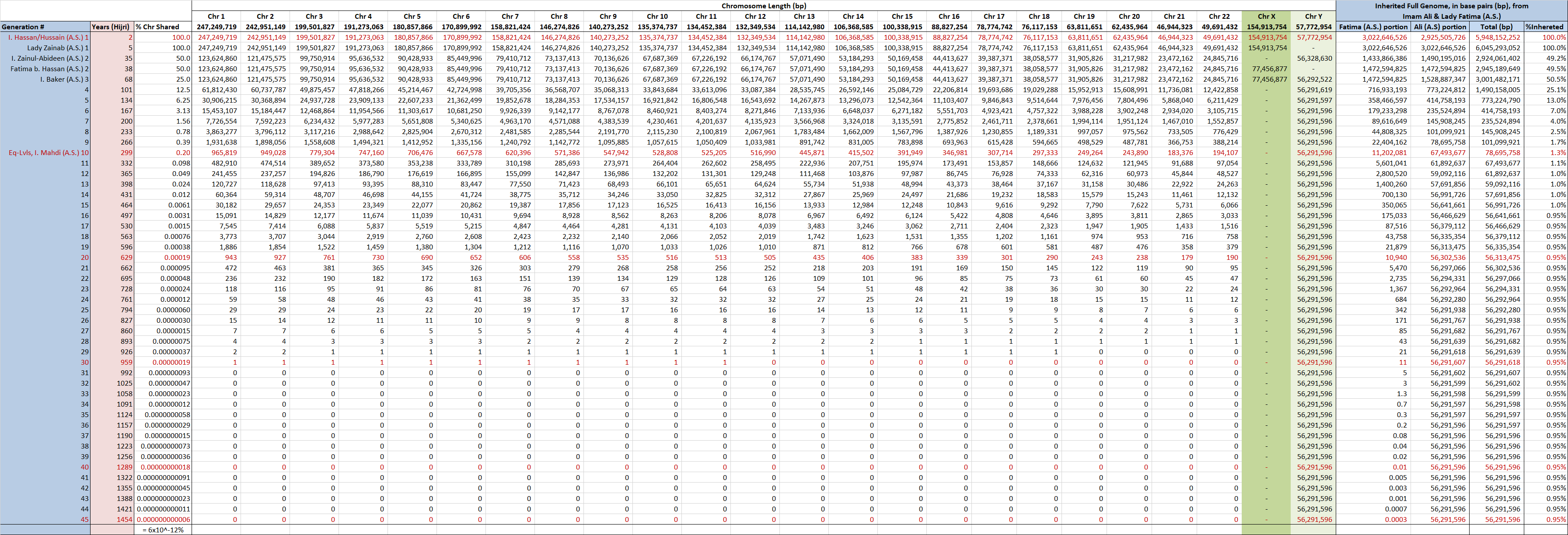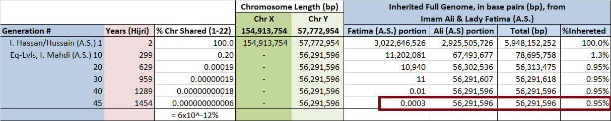 وبالخلاصة، يتبيّن أنّ العلويّين في أيّامنا هذه لا يحملون إلّا القُسم الثابت من ChrY في أجسامهم من أبيهم علي (ع)، والذي يصل إلى حوالي 56 مليون bp أو ما يُعادل 0.95% من مجموع الجينوم البشري العام لديهم. وكلّما زاد التزاوج داخل أُسَرهم العلويّة عبر العصور، كلّما عَلَت نِسبة bp segments من جينات أمّهم السيّدة فاطمة وأبيهم الإمام علي (ع) في أجسامهم، ولكنّها تبقى ضئيلة جدّاً. فالحمدلله على نعمة ChrY.