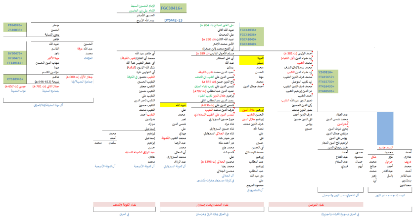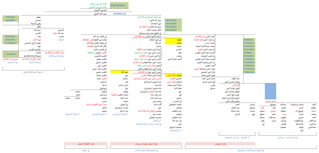 مواضيع مُتعلّقة: FT108977 ، Y20484 ، FGC41040 ، ZS10833 ، السادة آل سلطاني وذراري الحسين الأصغر ، نقش أولاد طاهر في المدينة ، مُشجّر الطالبيّين ليحيى النسابّة ، الطالبيّات والهاشميّات من أمّهات الطالبيّين ، منتقلة الزيديّة وهيكليّتهم الجينيّة – خرائط ومشجرات ، منتقلة الجعفريّين الحُسينيّين – خرائط ومشجرات وآثار ، منتقلة السادة الموسويّة – خرائط ومشجرات وآثار ، منتقلة العبّاسيّين العلويّين – خرائط ومشجرات وآثار ، منتقلة العقيليّين والحنفيّين – خرائط ومشجرات وآثار ، منتقلة الجعافرة – خرائط ومشجرات وآثار ، مشاهد ومشاعر مكّة المُكرّمة ، مشاهد ومزارات المدينة المُنوّرة ، مشاهد ومزارات الكوفة والنجف الأشرف