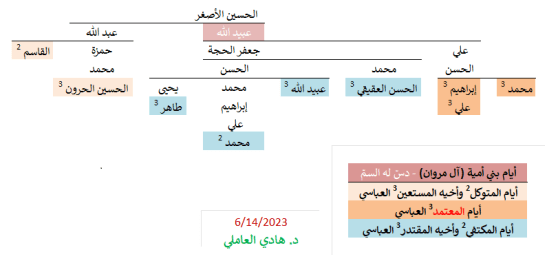 وهذا مُشجّر مبسّط يوضح الفروع الحُسينيّة الأصغريّة الباقية التي عاشت وتكاثرت في القرن الخامس الهجري مضافاً له رؤيتنا لمواقع التحوّرات المُشتركة العُليا والعوائل المُتكتّلة تحتها في المشروع: