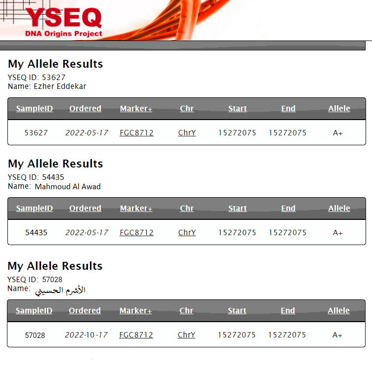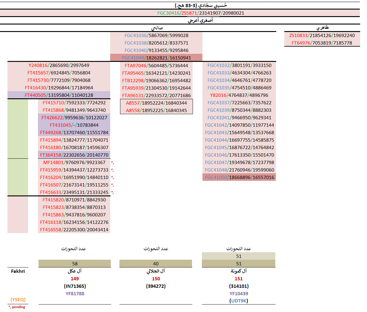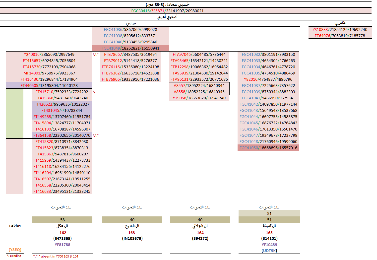 مُلاحظة: تبقى هذه الهيكليّات الجينو-تراثيّة قيد التدقيق والدراسة وتحتاج المزيد من العيّنات بالمواريث والجغرافيا الصريحة لتدعمها وتصحّحها.