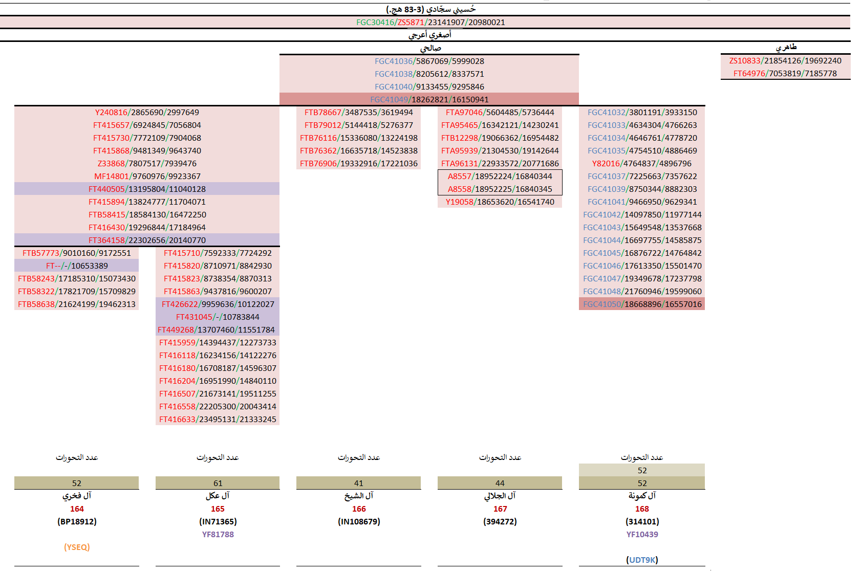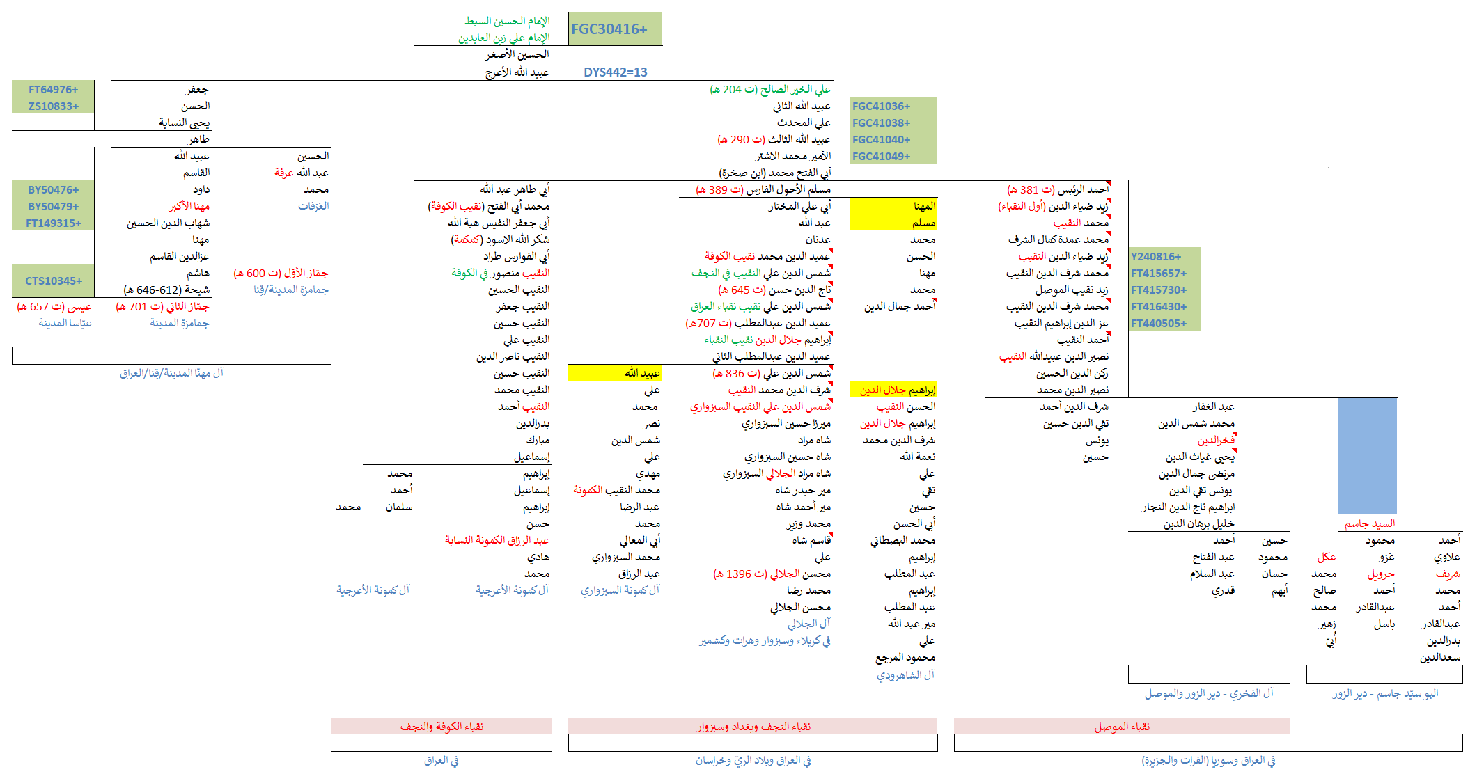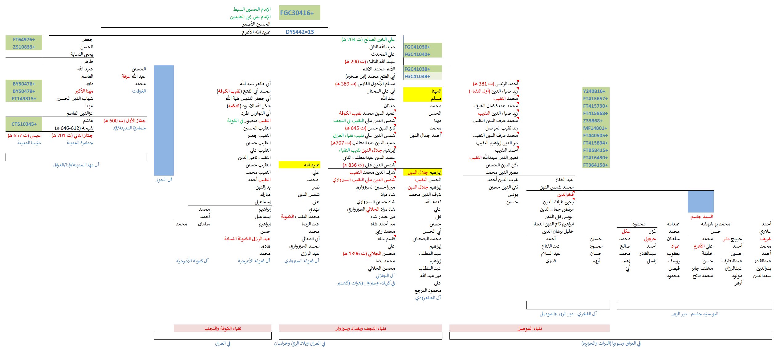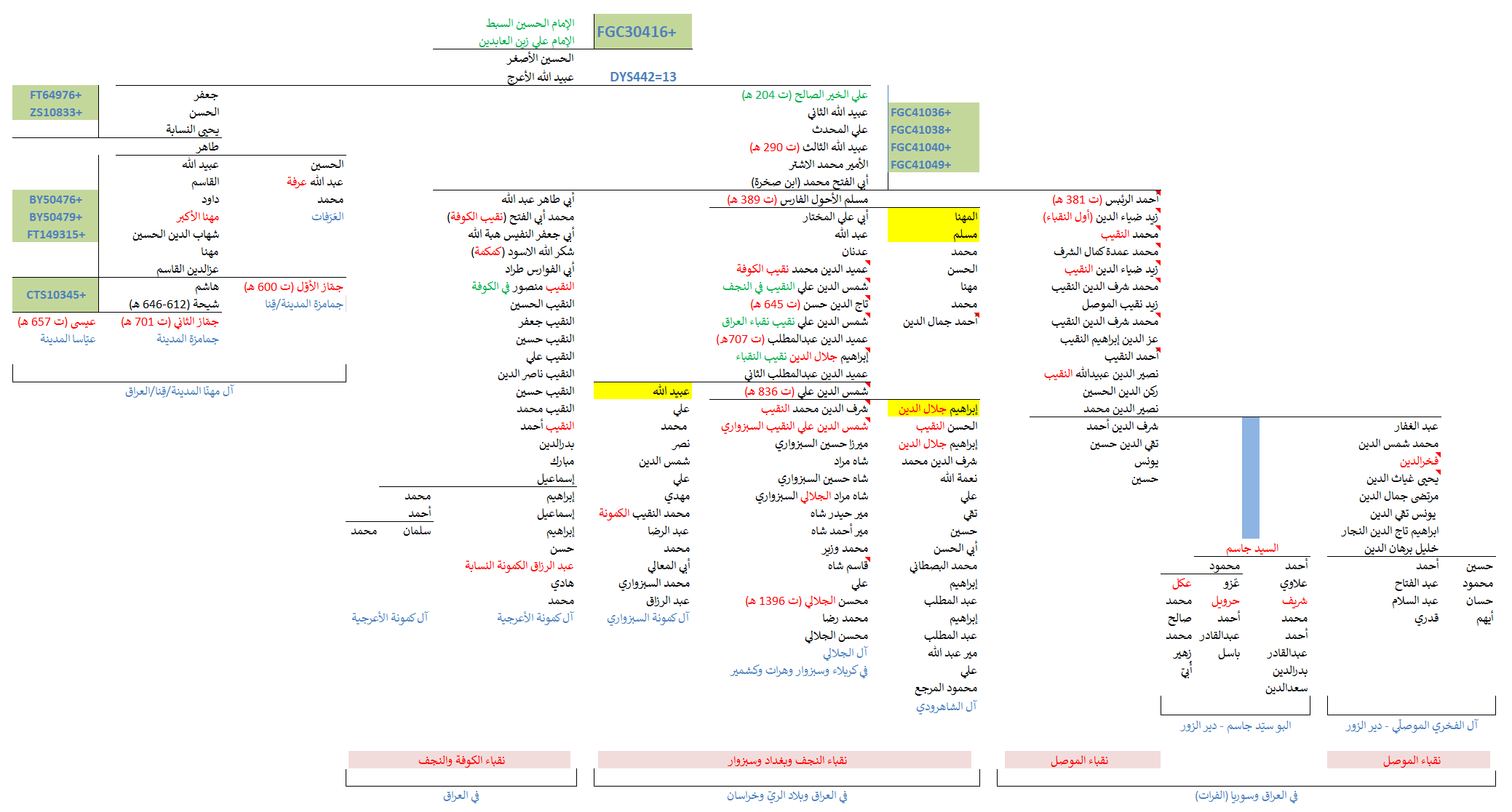 مواضيع مُتعلّقة: FT108977 ، Y20484 ، FGC41040 ، ZS10833 ، السادة آل سلطاني وذراري الحسين الأصغر ، نقش أولاد طاهر في المدينة ، مُشجّر الطالبيّين ليحيى النسابّة ، الطالبيّات والهاشميّات من أمّهات الطالبيّين ، منتقلة الزيديّة وهيكليّتهم الجينيّة – خرائط ومشجرات ، منتقلة الجعفريّين الحُسينيّين – خرائط ومشجرات وآثار ، منتقلة السادة الموسويّة – خرائط ومشجرات وآثار ، منتقلة العبّاسيّين العلويّين – خرائط ومشجرات وآثار ، منتقلة العقيليّين والحنفيّين – خرائط ومشجرات وآثار ، منتقلة الجعافرة – خرائط ومشجرات وآثار ، مشاهد ومشاعر مكّة المُكرّمة ، مشاهد ومزارات المدينة المُنوّرة ، مشاهد ومزارات الكوفة والنجف الأشرف